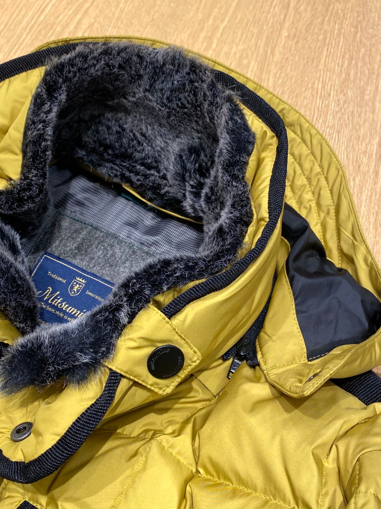 襟元にはファーが付いており、マフラー無しでも首元を暖めてくれます。