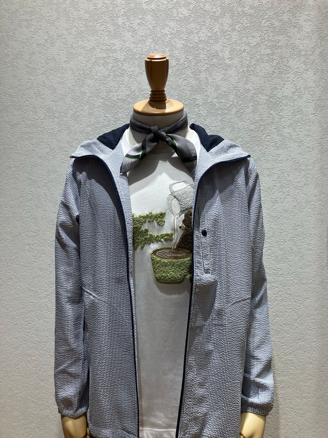 こちらの商品はシアサッカーの生地のパーカーになっていますのでこれから暖かくなる季節にぴったりです!
