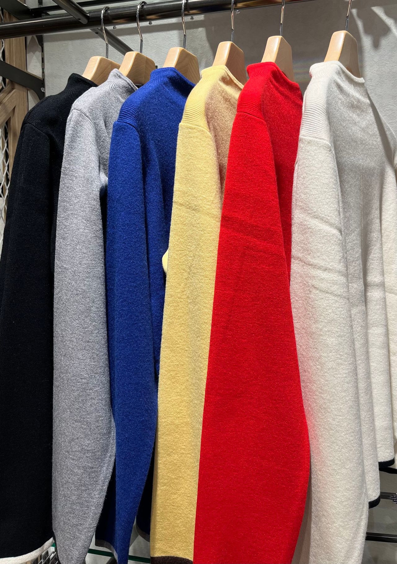 ニットのカラー展開もベーシックなカラーからコートの差し色にぴったりな鮮やかなものまで、コーディネートに合わせてお選びいただけます♪