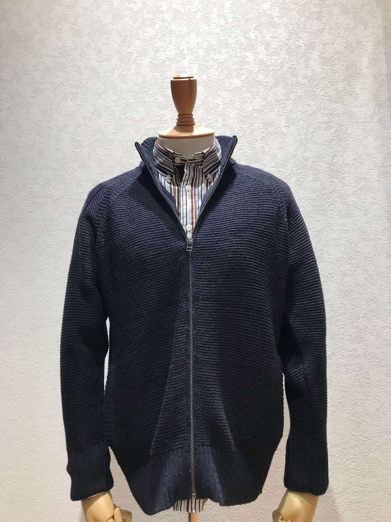 これからの冬の季節には重宝するアイテムでカジュアルシャツとの相性も良い一着となっており、スーツの中にカーディガン代わりとしても着ていただけます!