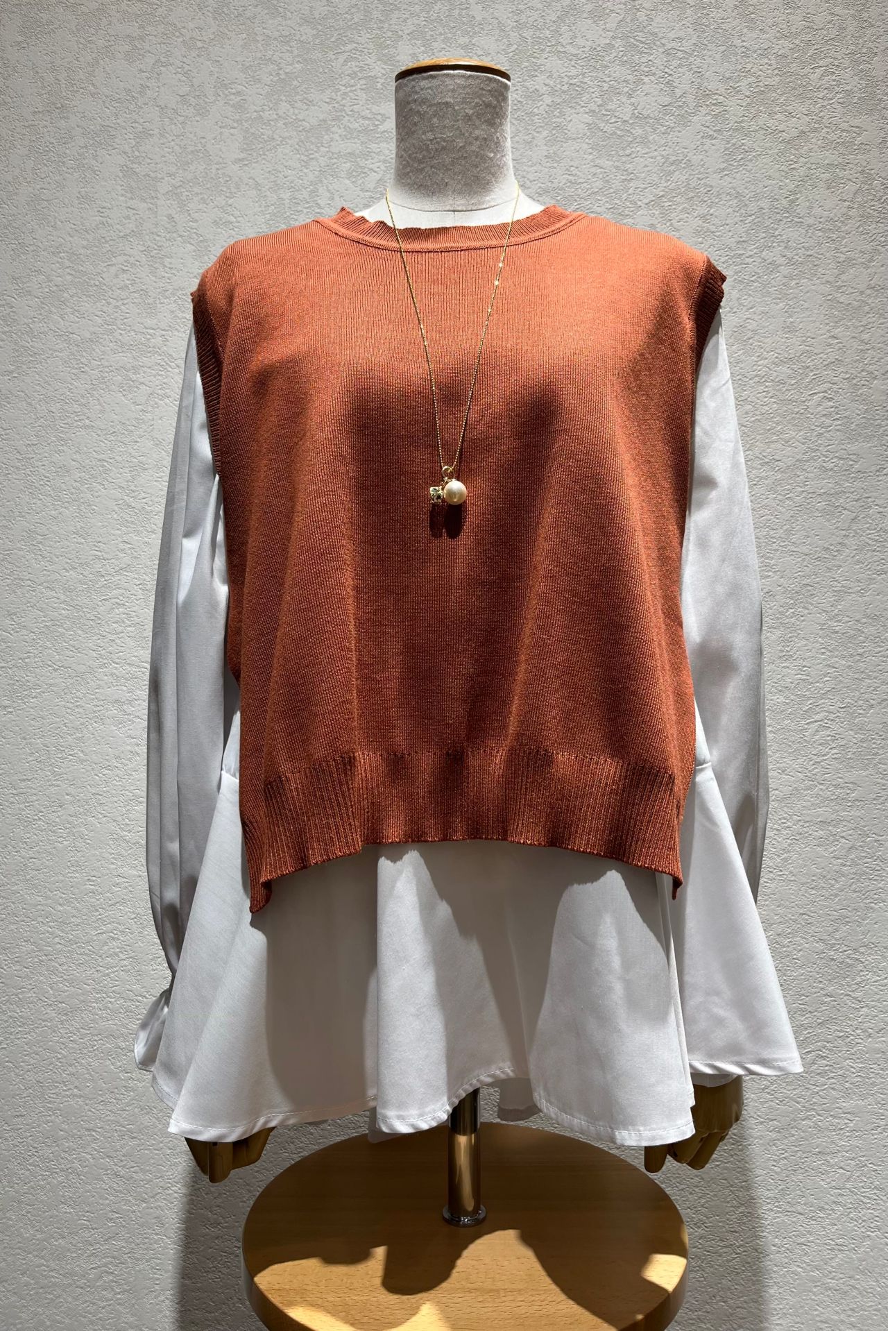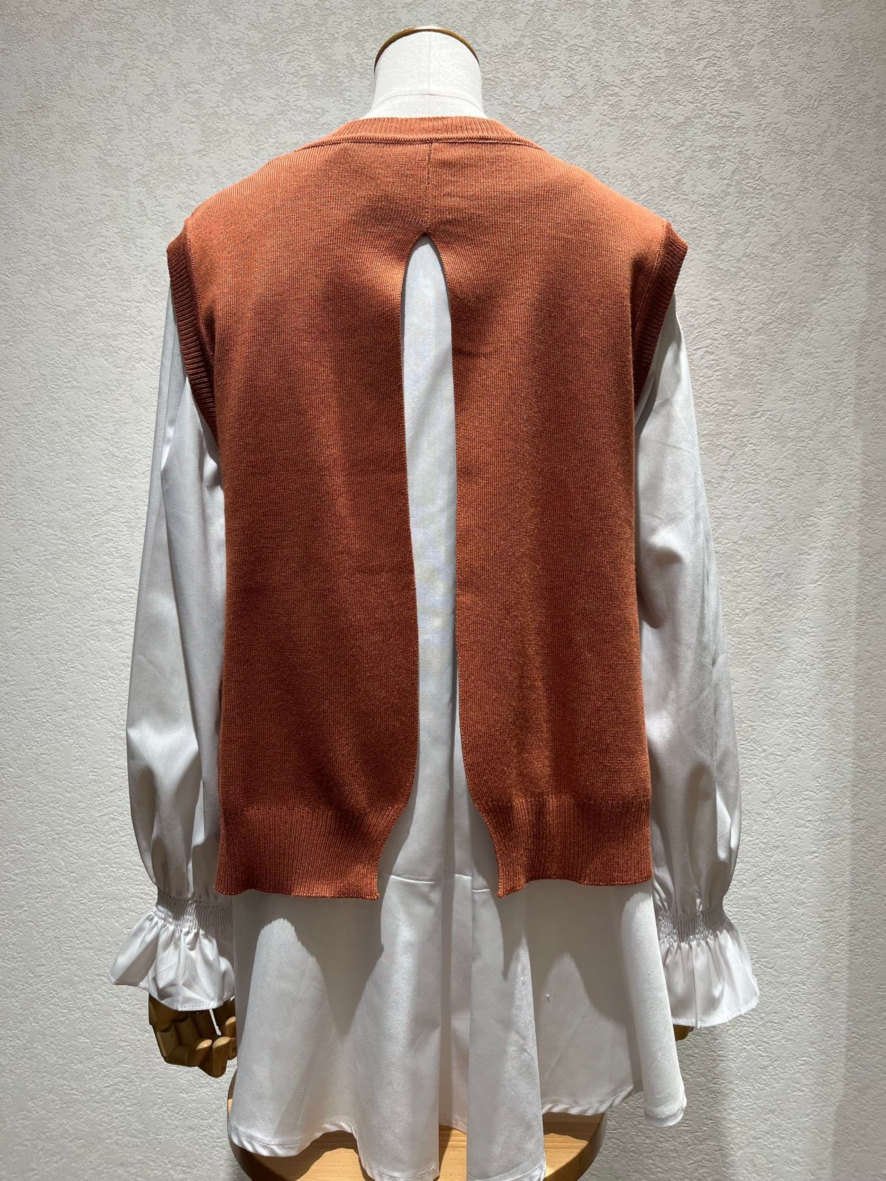 ブラウスの着丈も長めなのでパンツに合わせやすく、ベストとブラウスは別々にも着られるので幅広いコーディネートを楽しんでいただけます!