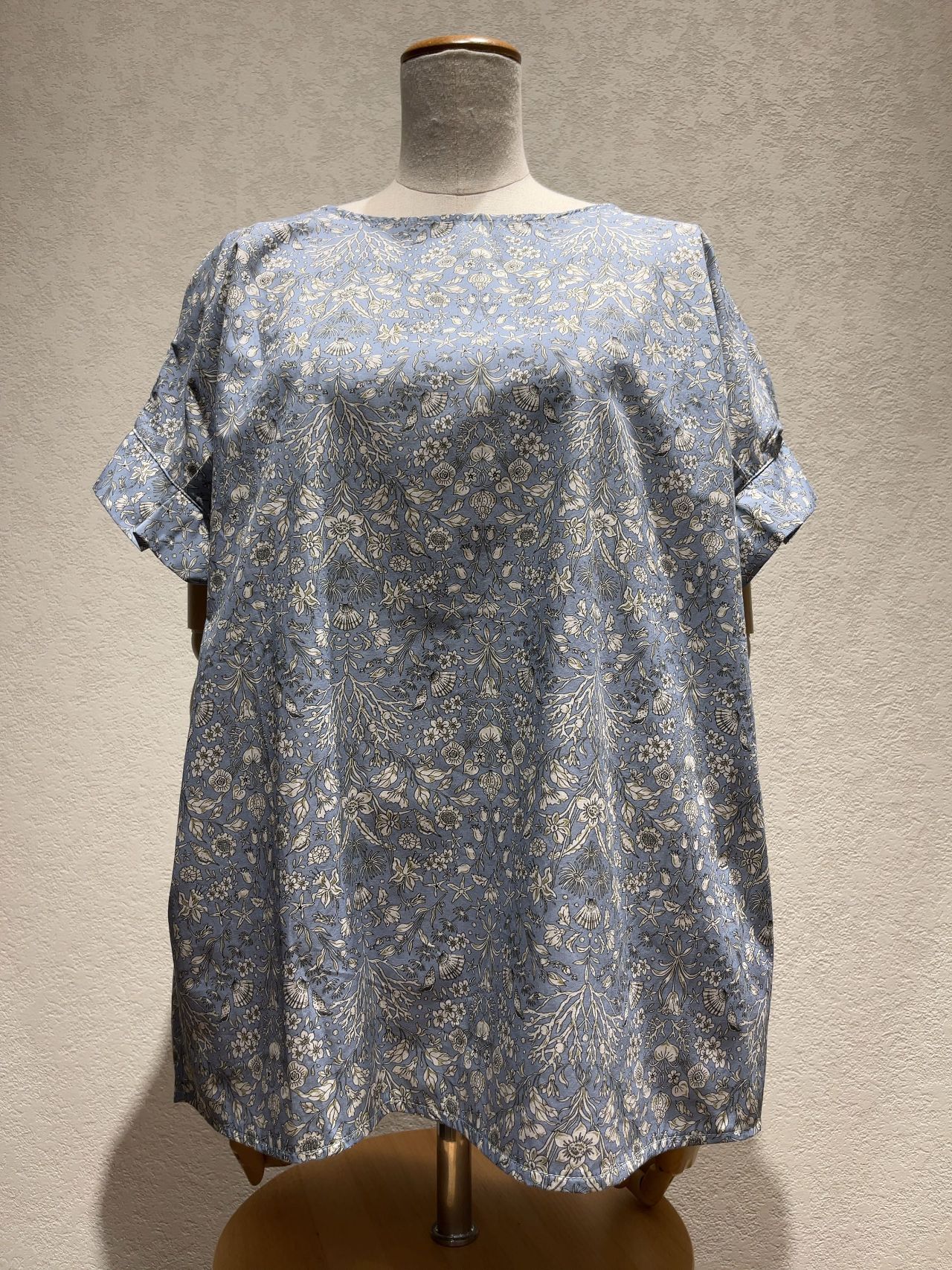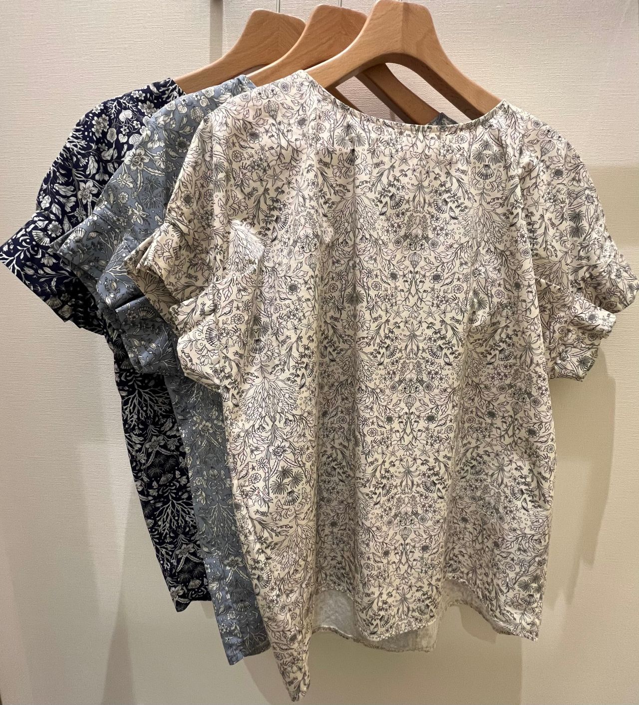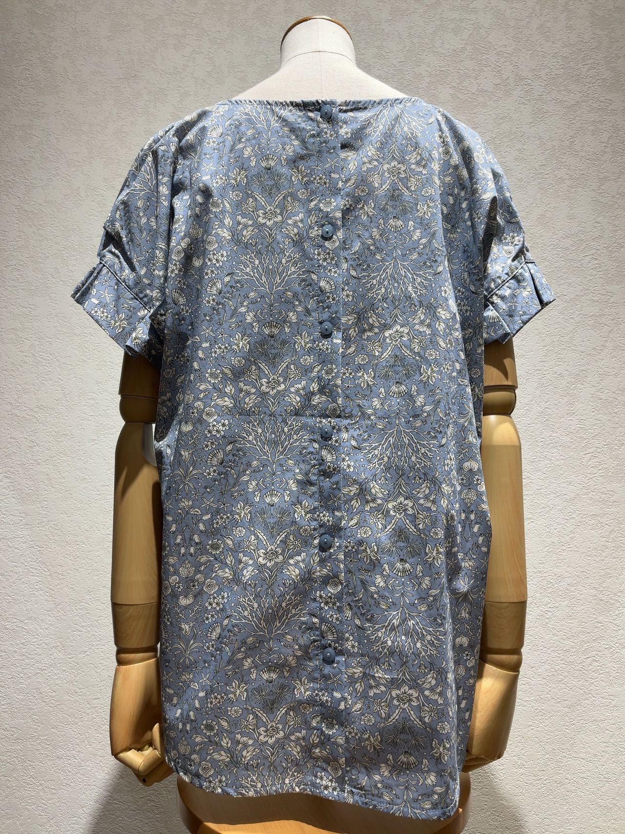 今回ご紹介させて頂くのは、ユニークな植物柄のプリントが目を惹くブラウスです。
