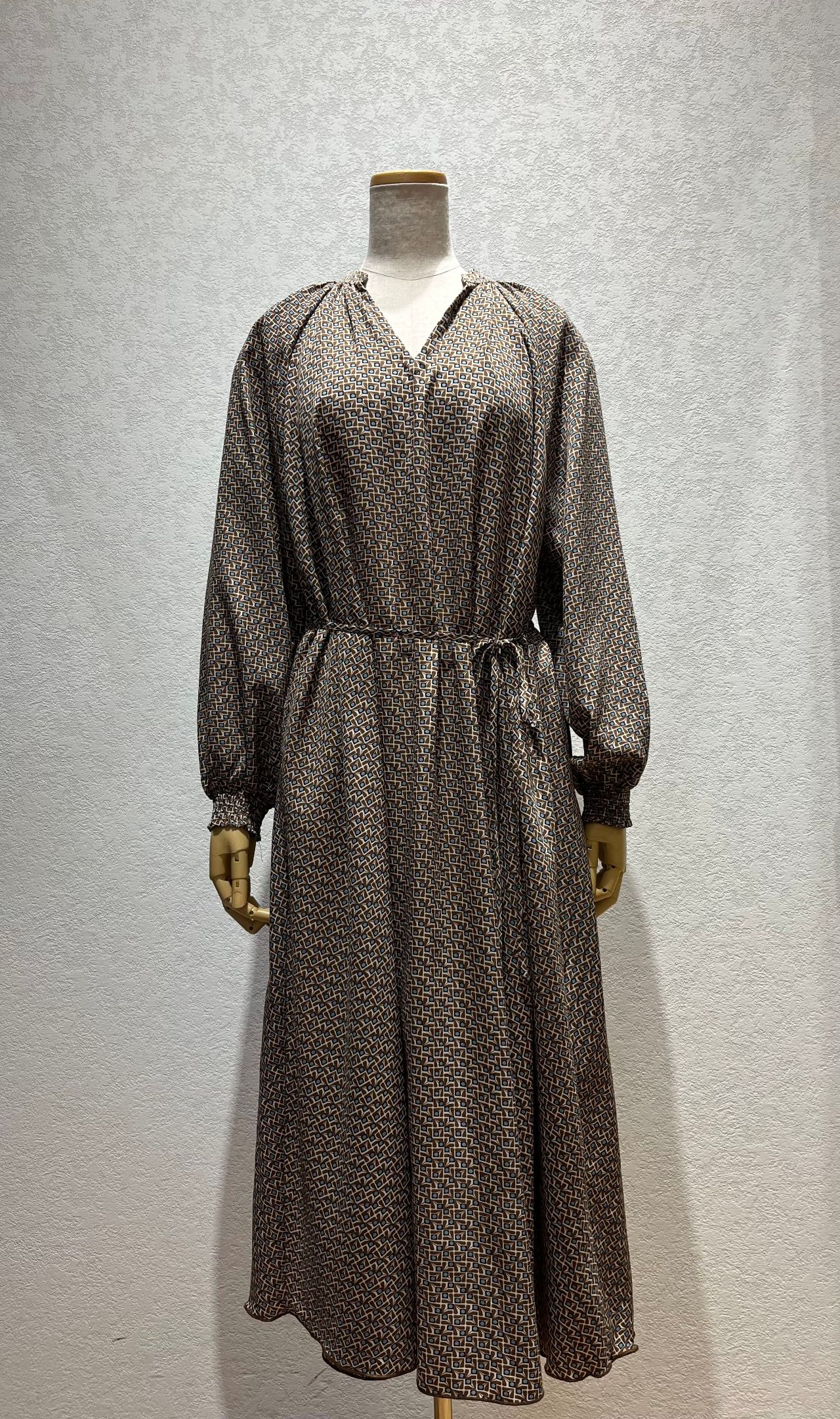 レトロ小紋柄ラグラン袖ワンピース