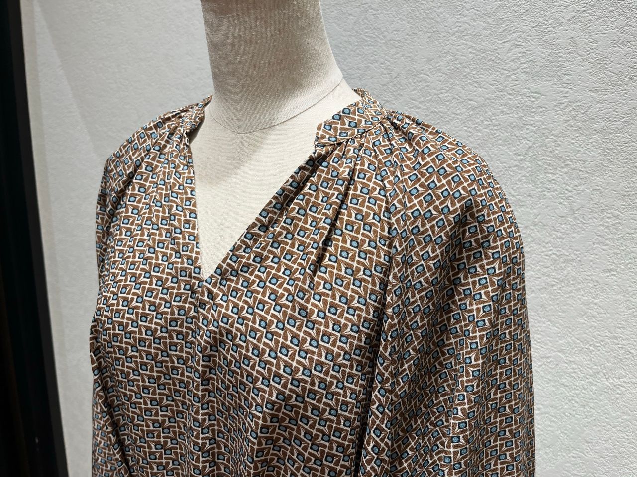 襟元のギャザーと抜け感のデザインがおしゃれです!