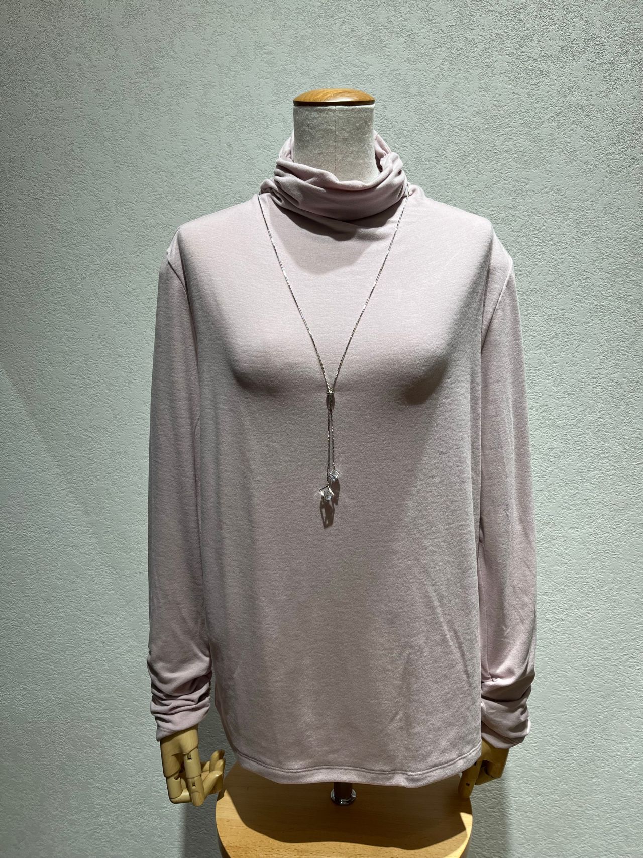 こちらの商品は襟元に少しボリューム感があるボトルネックになっております!