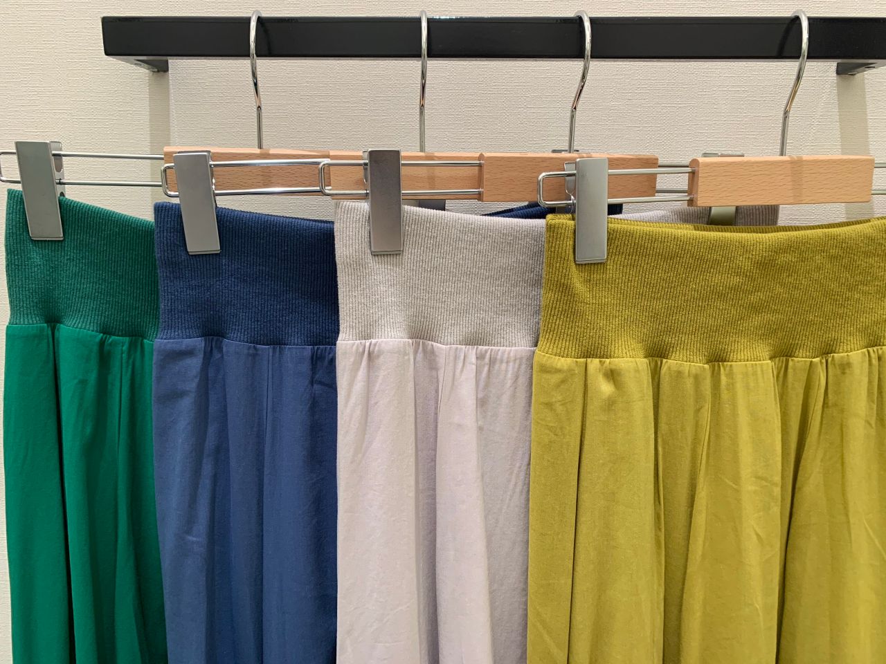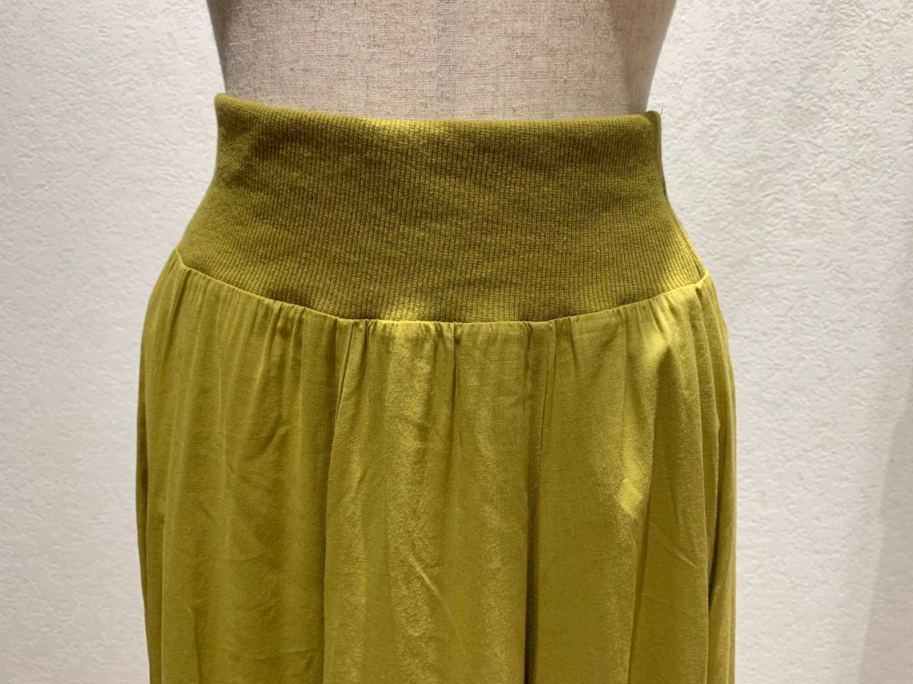 ウエストは総ゴムで着やすく、動いた時の揺れ感が上品な1枚になっています!