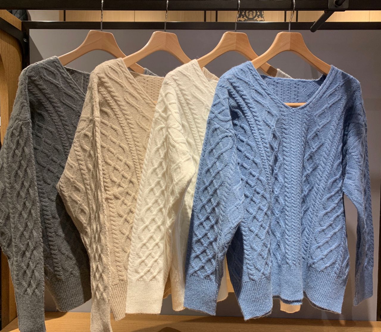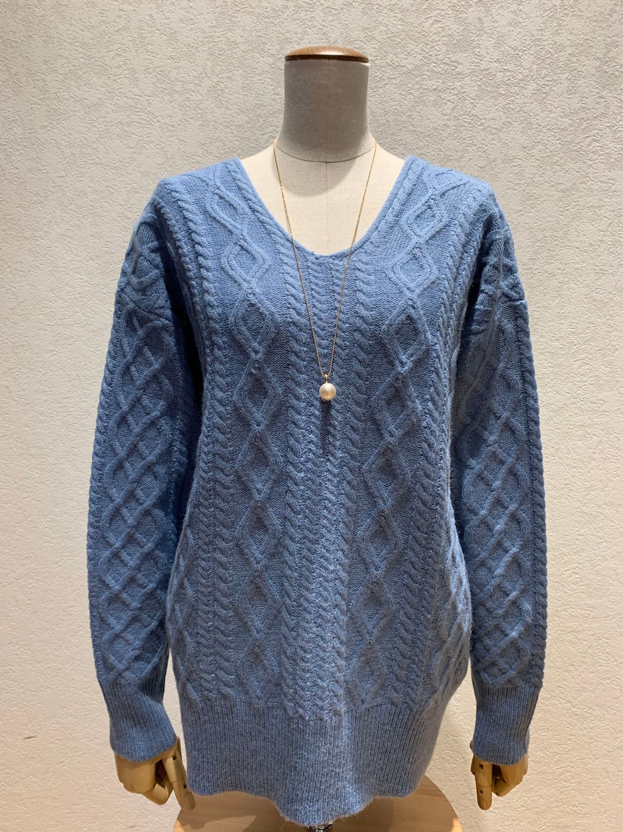 本日は、ケーブルニットには珍しいVネックのタイプをご紹介致します!!