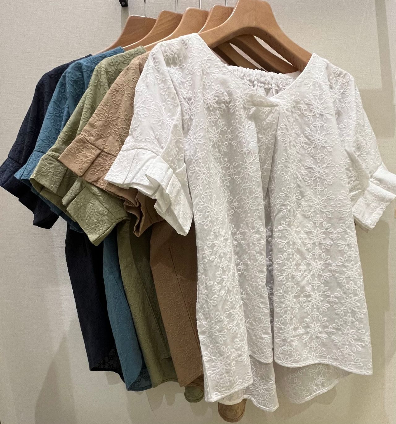 上品な刺繍レースが施された半袖のブラウスが登場!