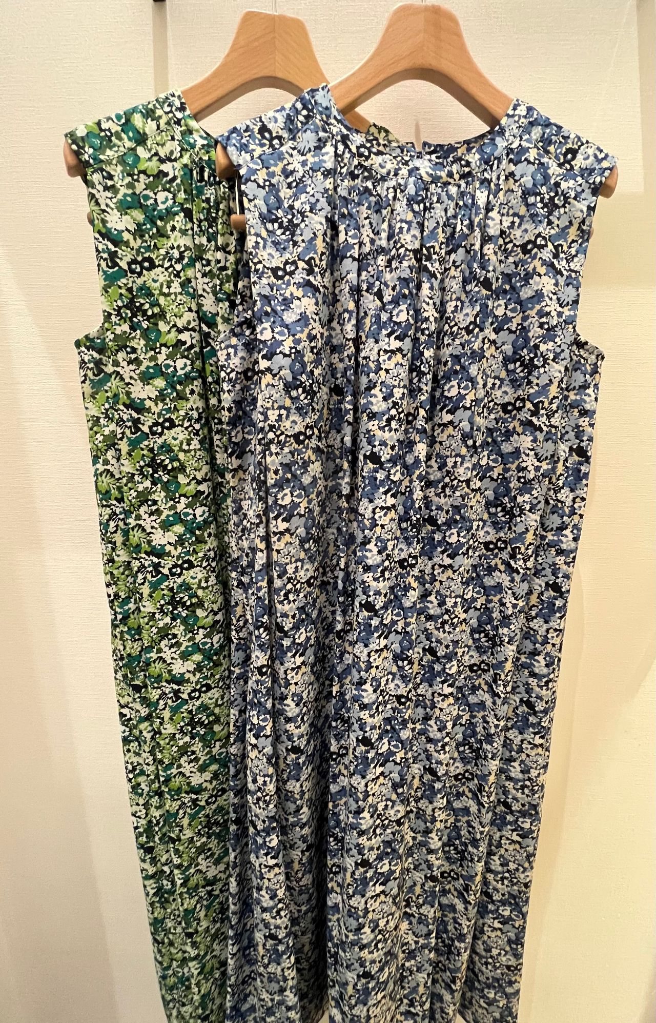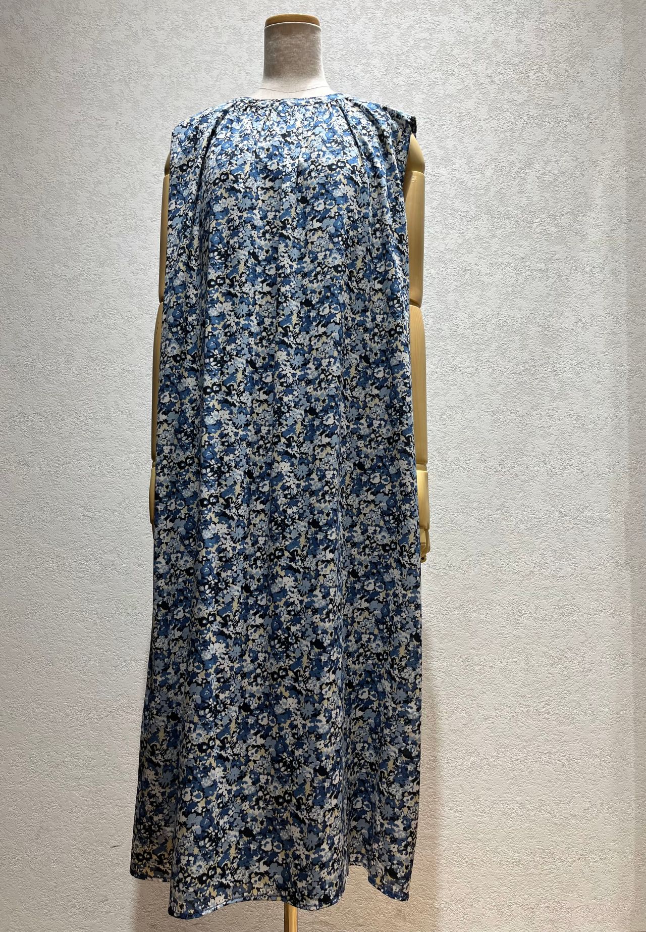 《小花柄 ギャザーノースリワンピース》