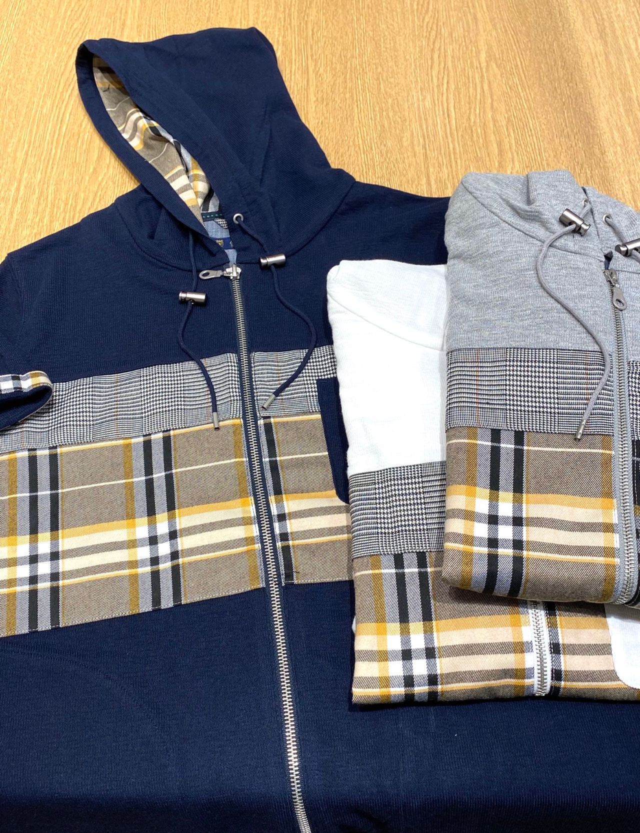 袖とフードの裏にオシャレなチェック柄がついているので、ロールアップでイメージチェンジが出来る事がメリットです。