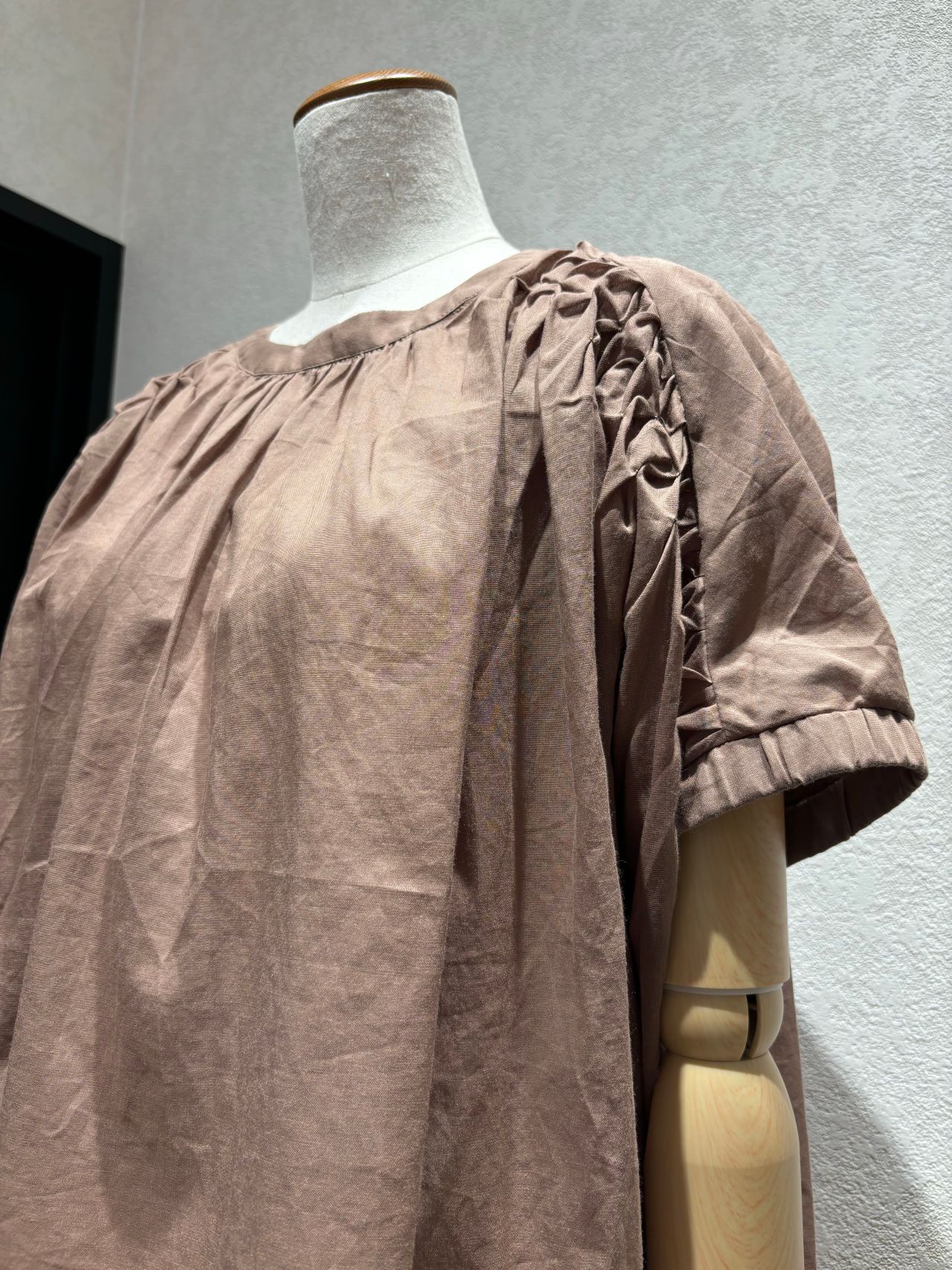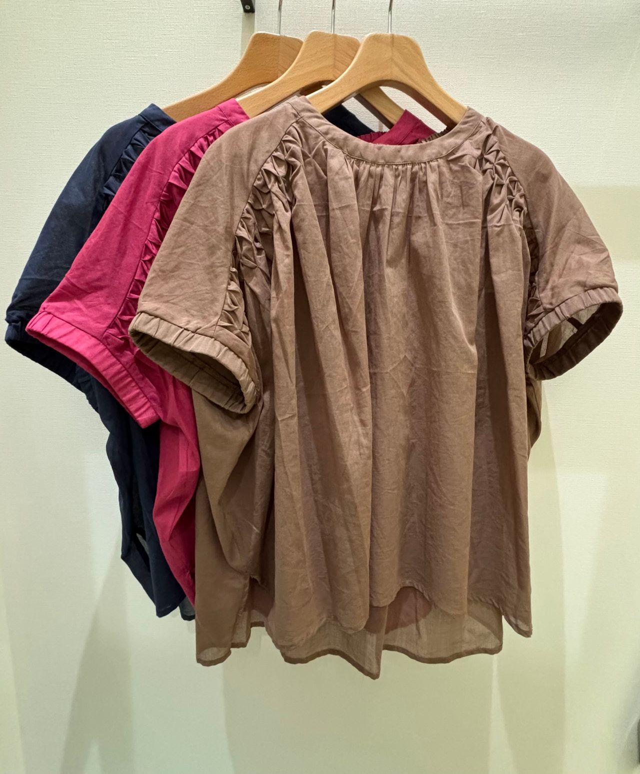 ガーゼのような柔らかい生地に、襟ぐりから袖にかけて同色のハンドスモッキング刺繍を施した可愛らしい商品が登場!機械では表現できない立体感と繊細で温かみのある仕上がりとなっております。