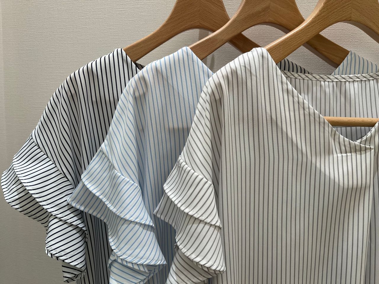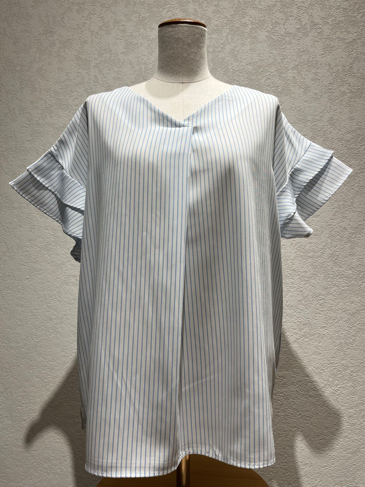 《ストライプ ティアード袖ブラウス》
