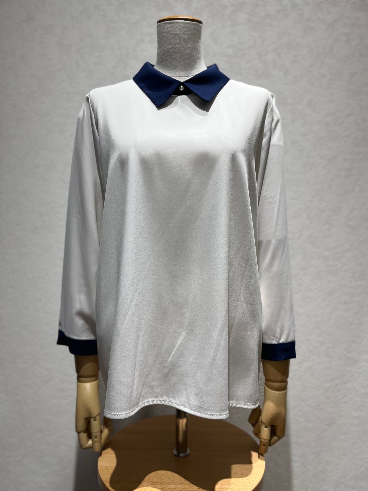 衿が可愛らしいブラウスで、キレイめなコーディネートにもお使いいただけます!