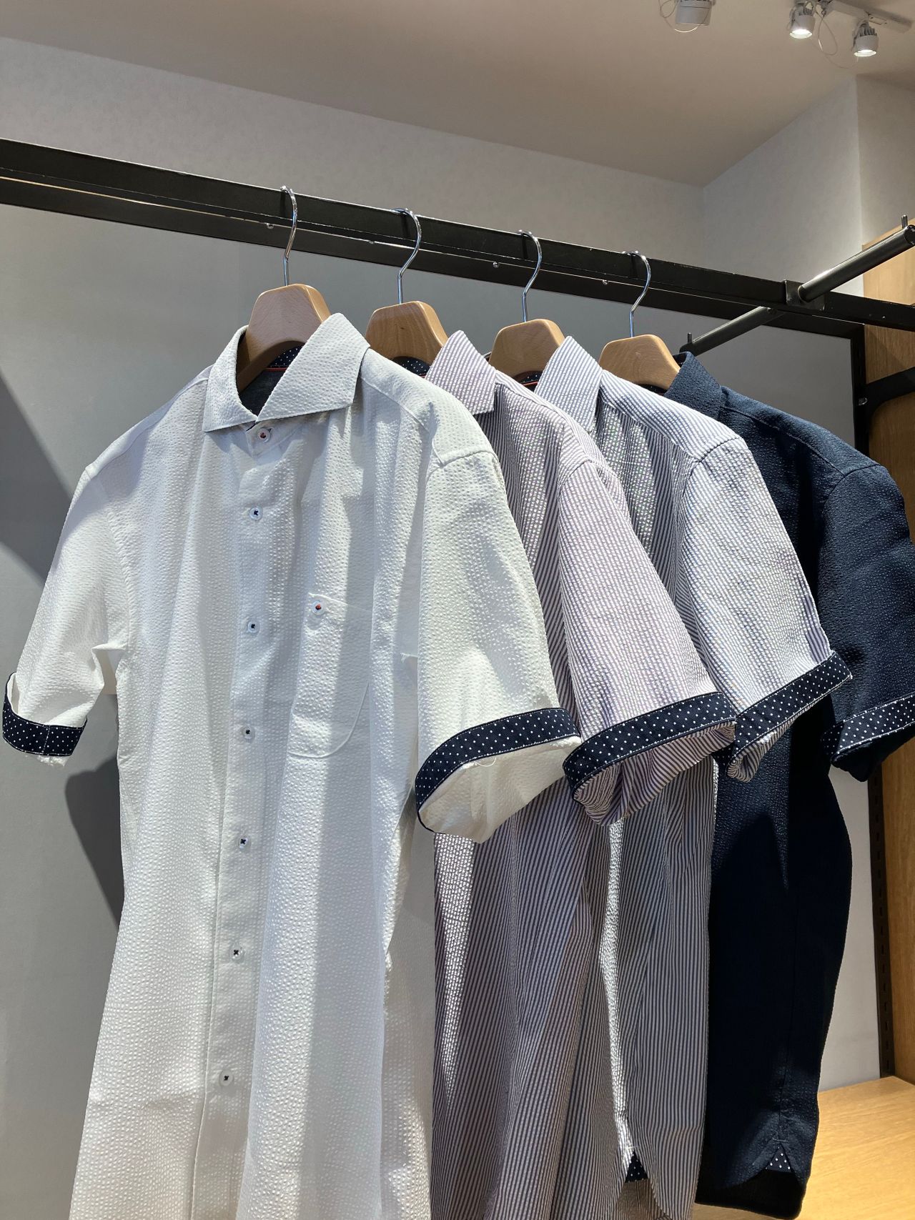 こちらの商品は、シアサッカーの生地を使用したシャツになっており