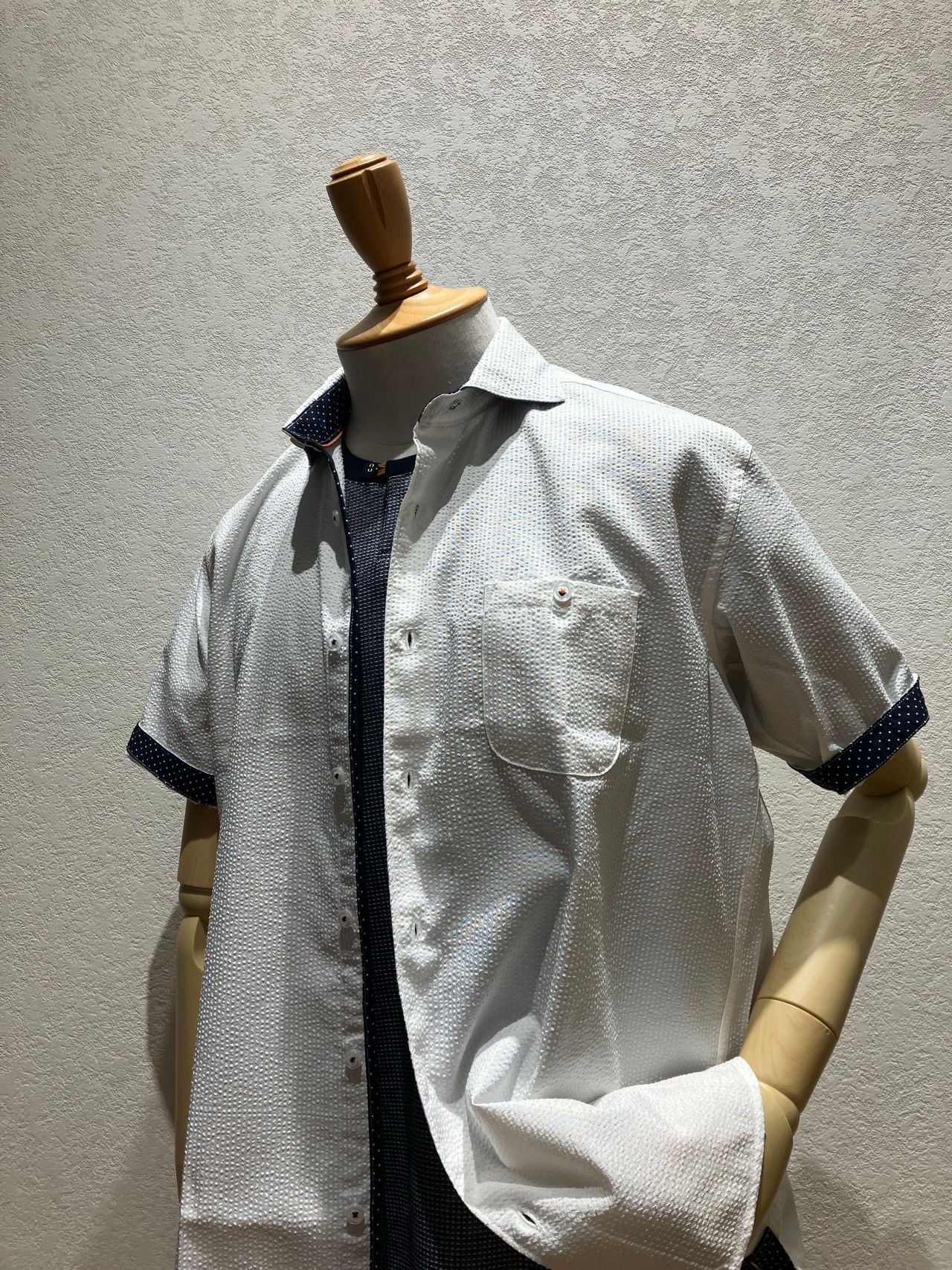 シアサッカー半袖シャツ