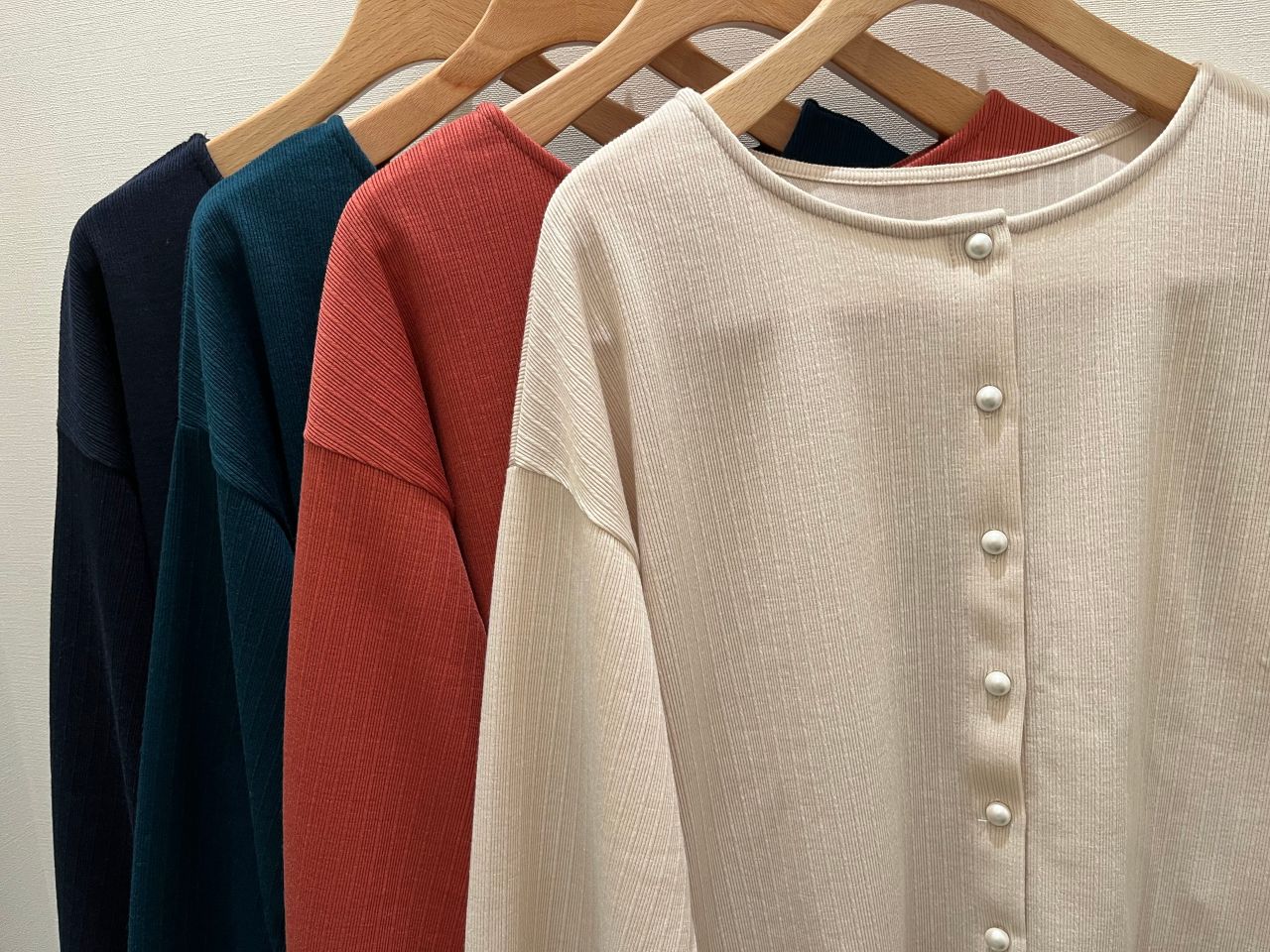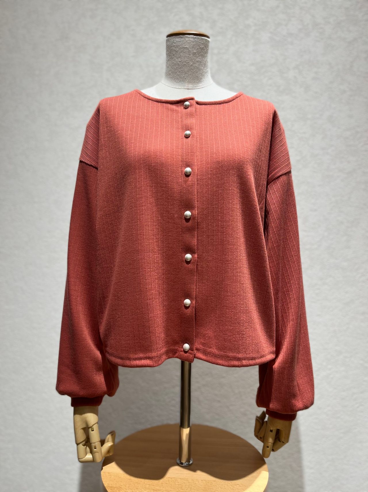 《前後2WAYパール釦リブカーディカットソー》