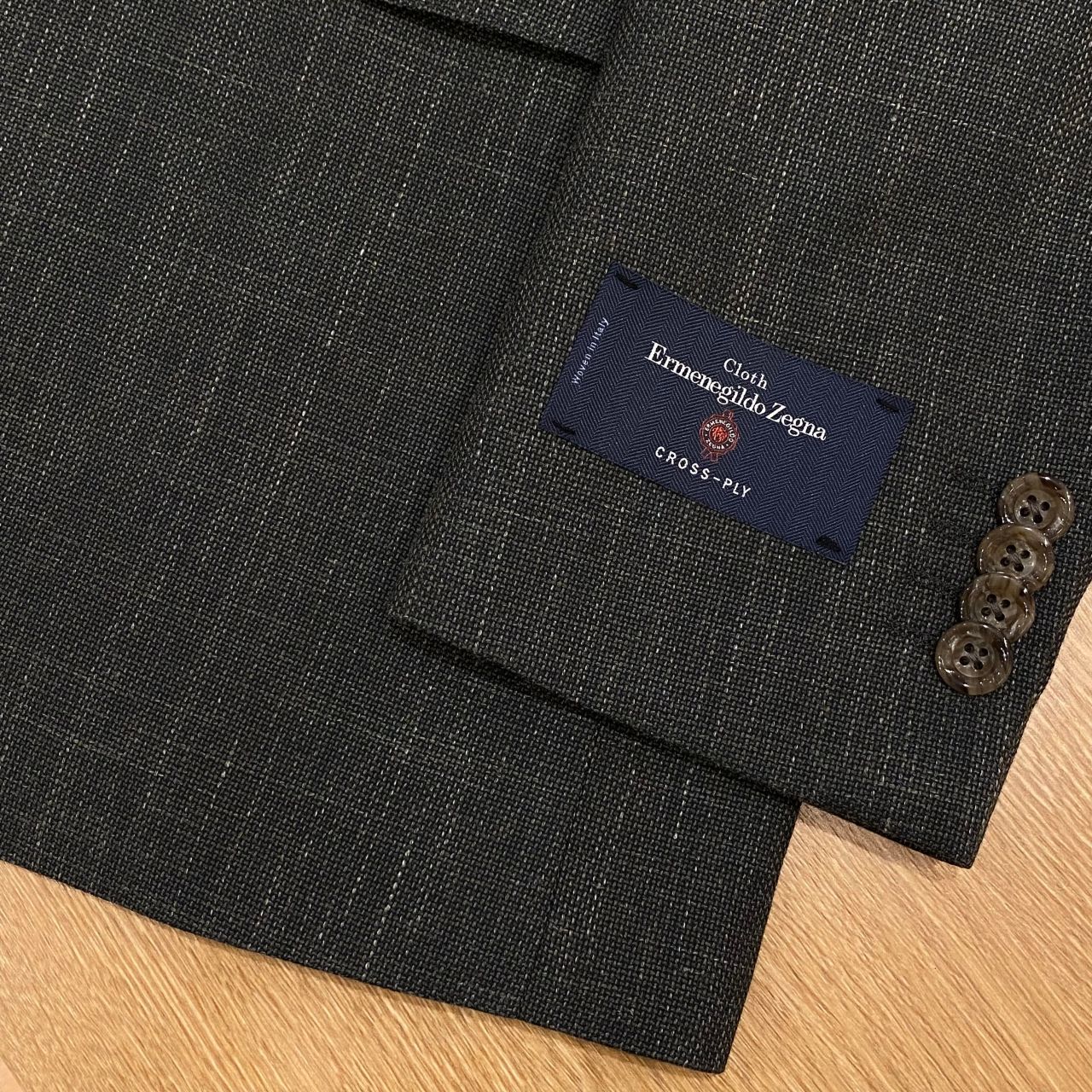 クロスプライはウール、リネン、シルクの混紡素材で、リネン100%の生地と比べ、シワになりにくく、人気のある夏向けの生地です。