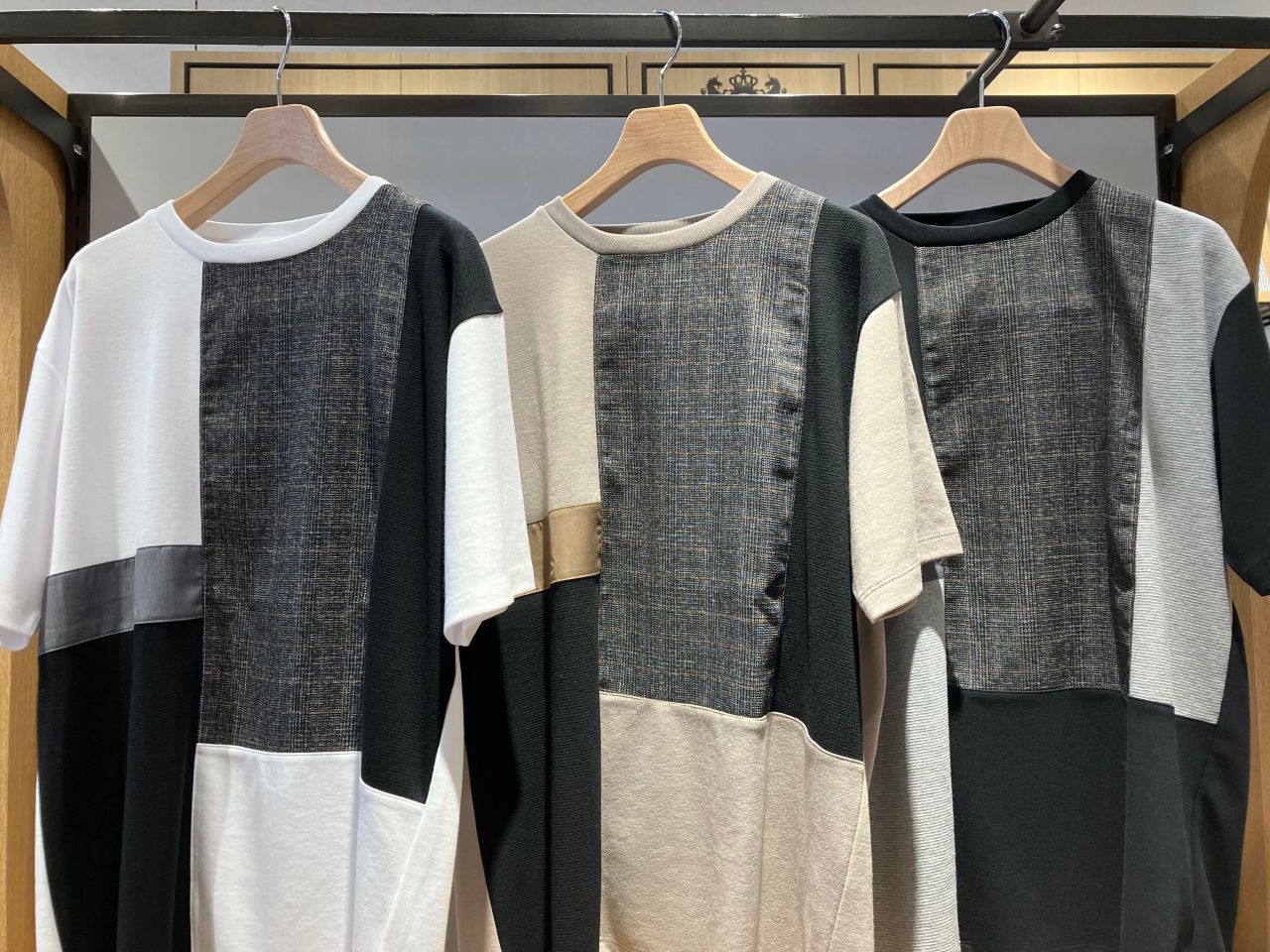 グレンチェックタテ切替Tシャツ