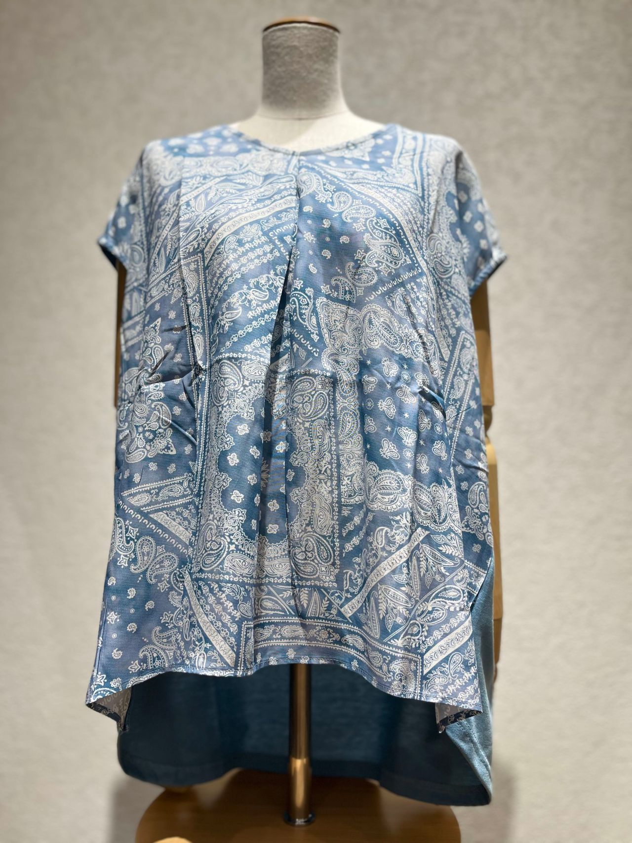 《バンダナ柄 タックフレンチ袖プルオーバー》