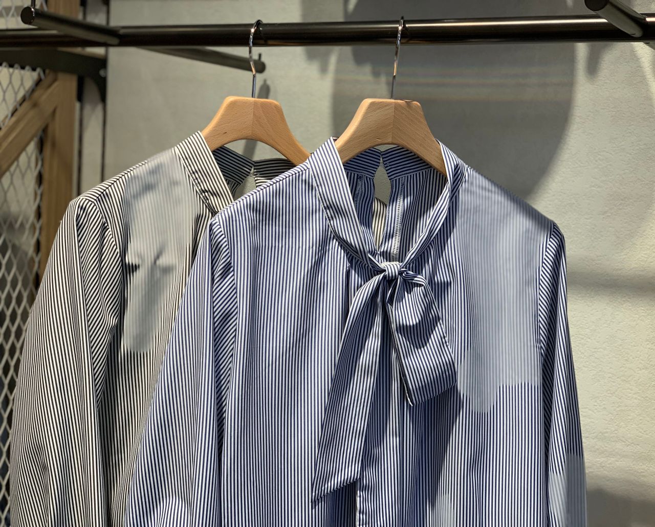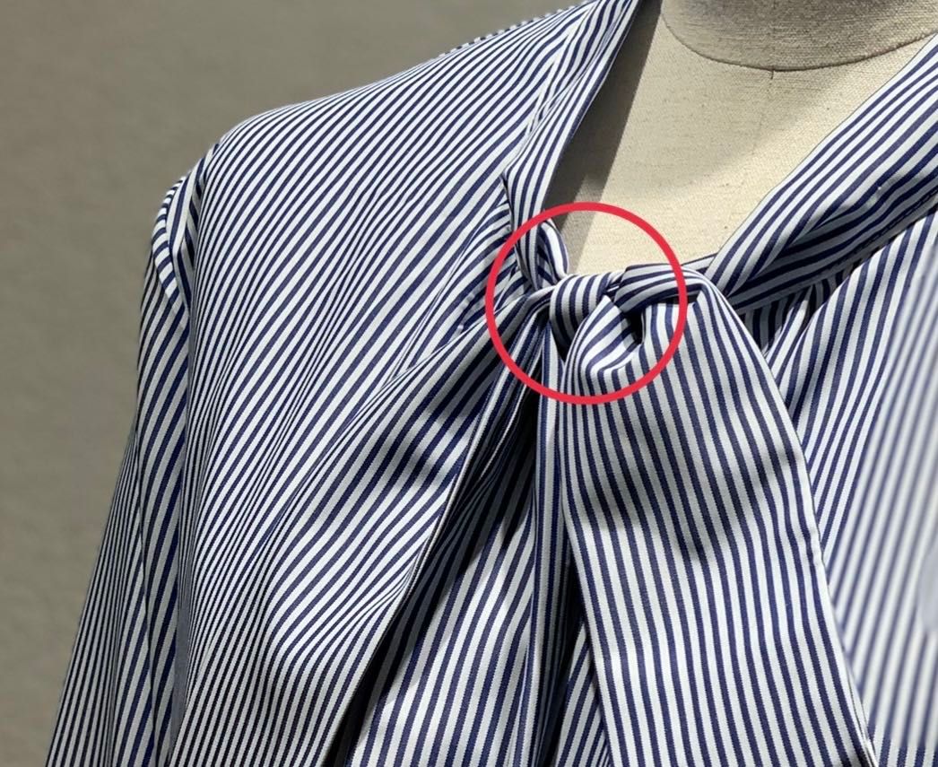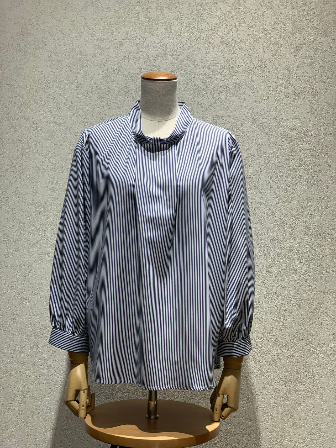 リボンを外すとスタンドカラーブラウスになるので、スッキリとした印象になります!