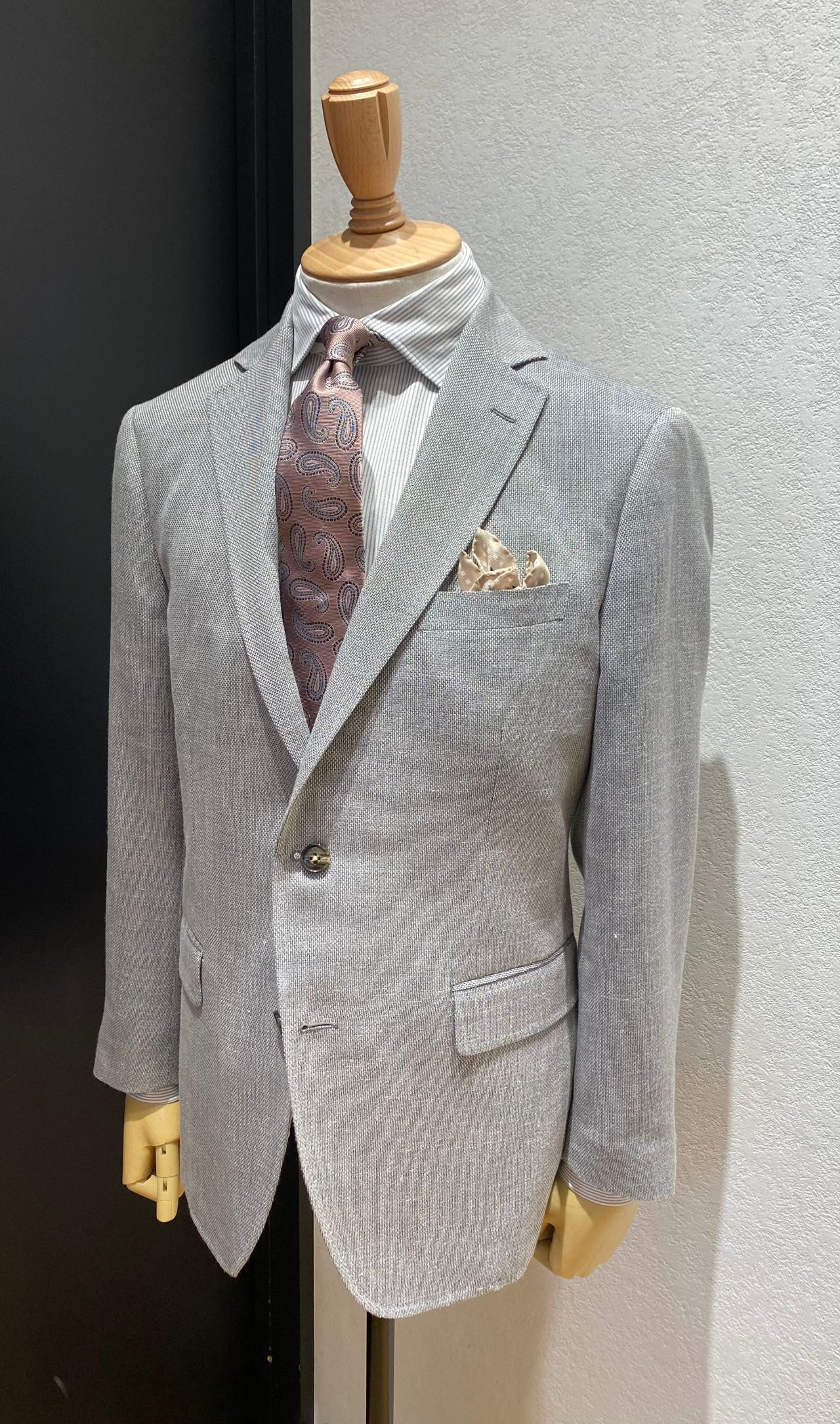 更にシルクとリネンを混紡しているため、ツヤ感があり、発色も綺麗で、高級感のあるジャケットとなっております!
