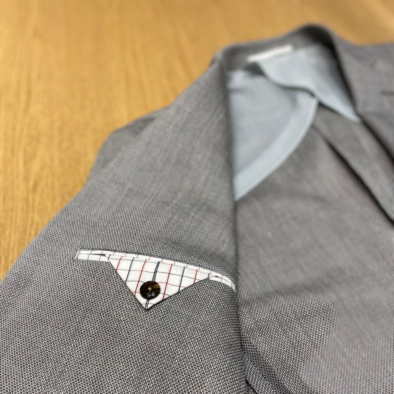 こちらのジャケットは愛知県尾張西部地域から岐阜県西濃地域にある尾州産地の尾州ウールを使っており、それを証として、尾州マークをつけられております!