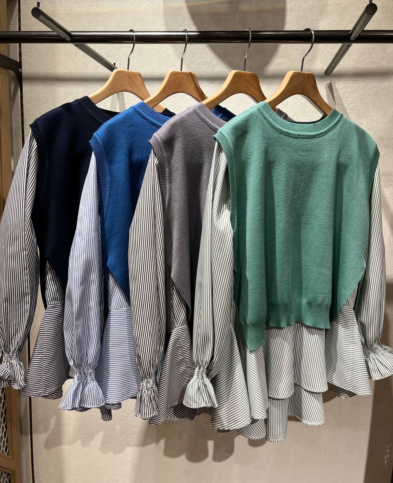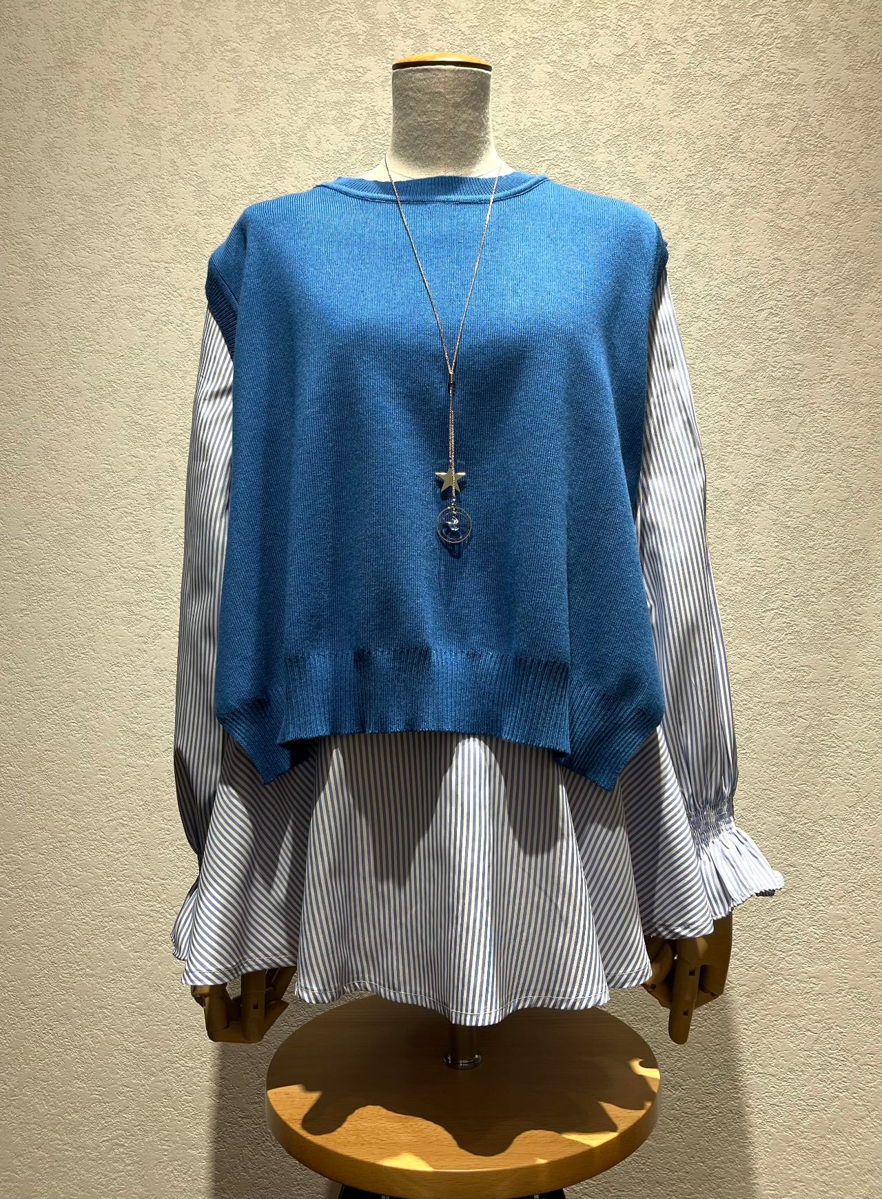 長め丈でパンツにも合わせやすく、ブラウスとベストは別々でも着用いただけるのでお手持ちのアイテムとの組み合わせで色々なコーディネートを楽しむことができます!