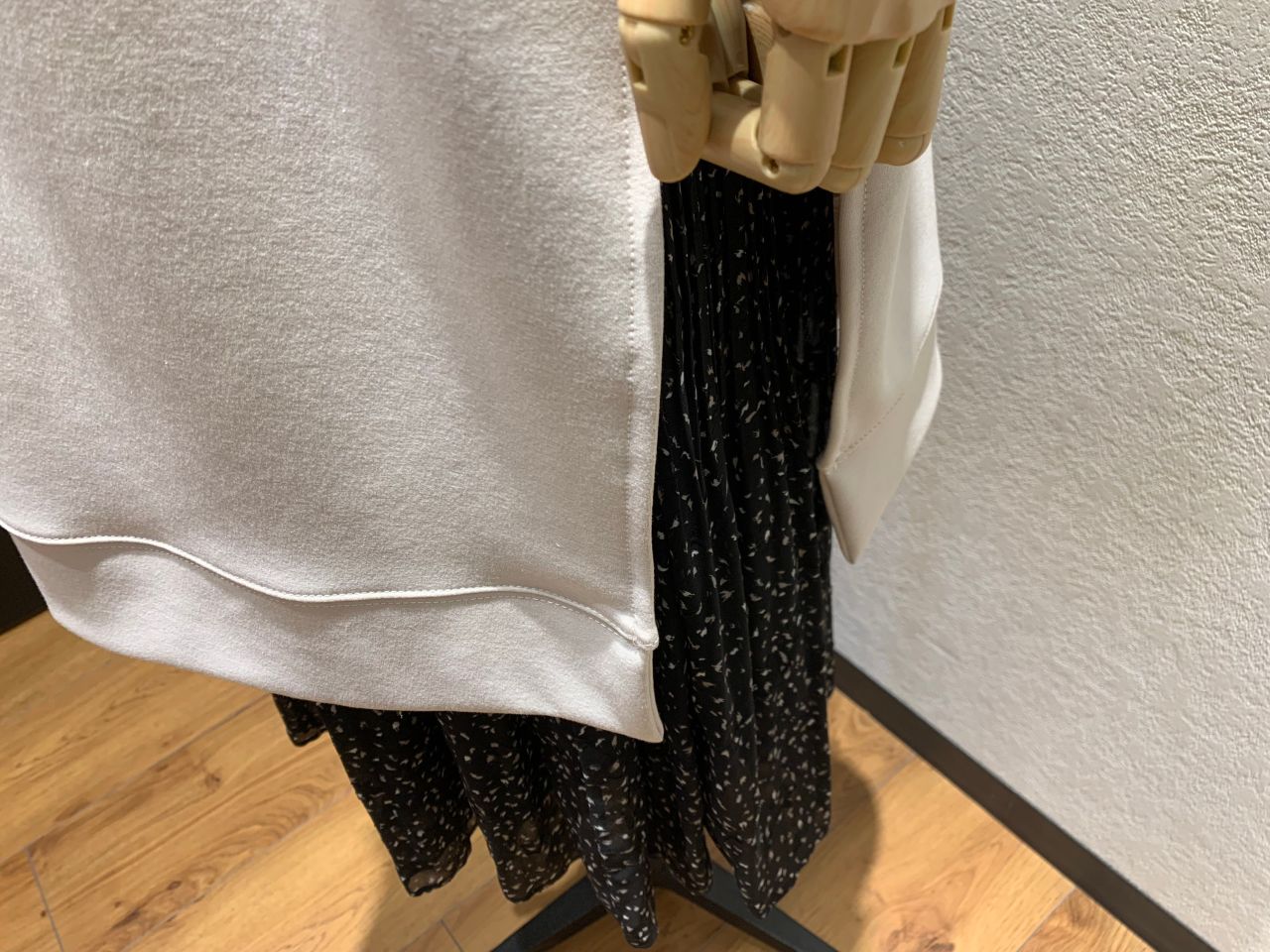 前回紹介したスカートを合わせて頂いてもちらっと動きが出て可愛い印象になります!