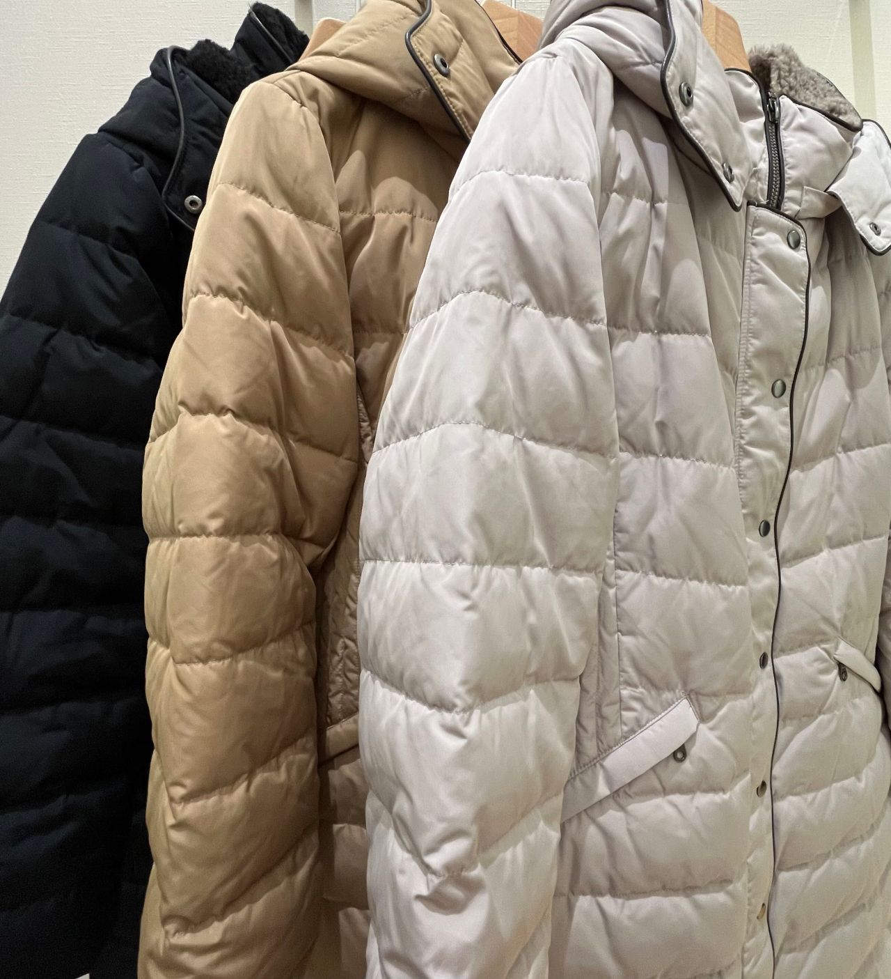 今回ご紹介させて頂くのは、今の時期に大変お買い得となっている合皮パイピングのダウンです。
