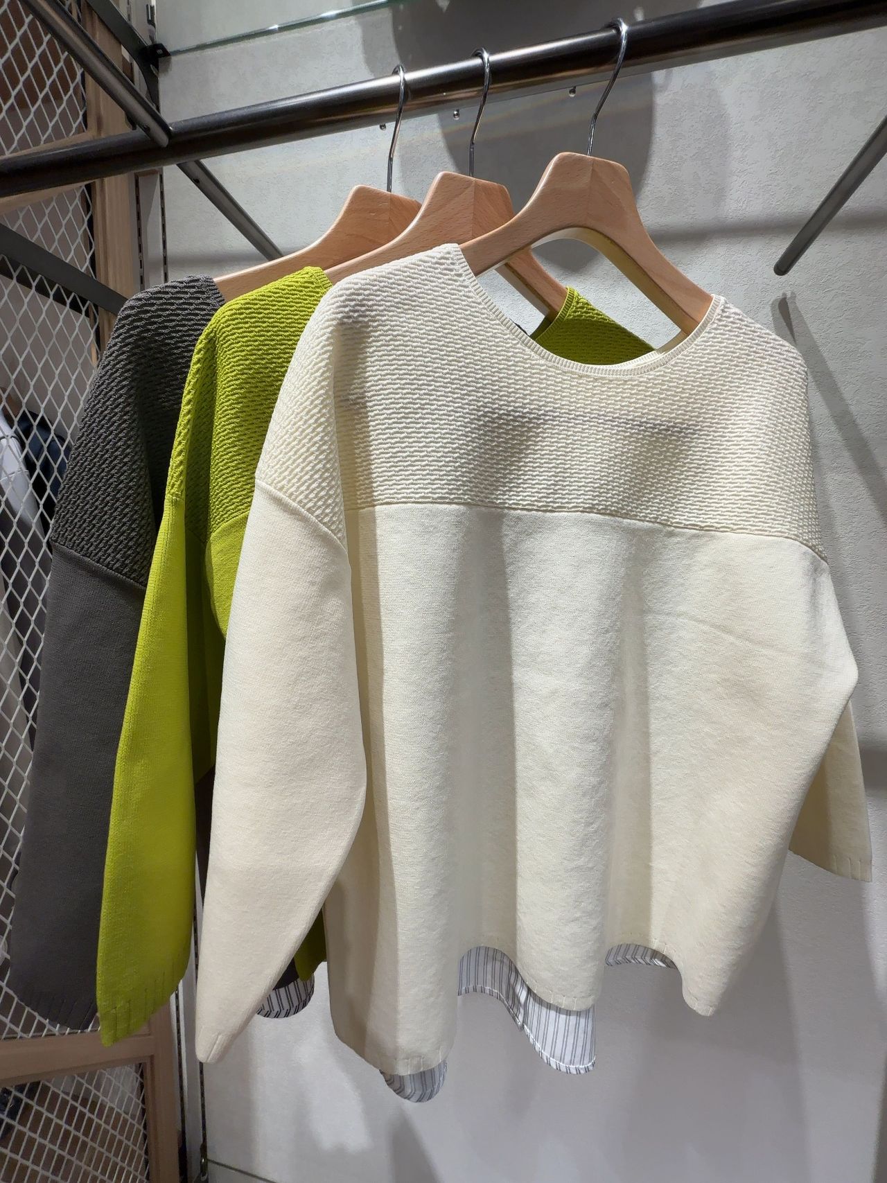 《後ろシャツ切替えスポンジニット》