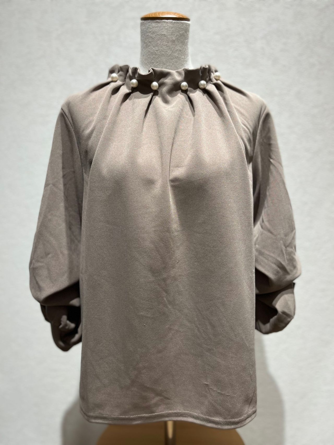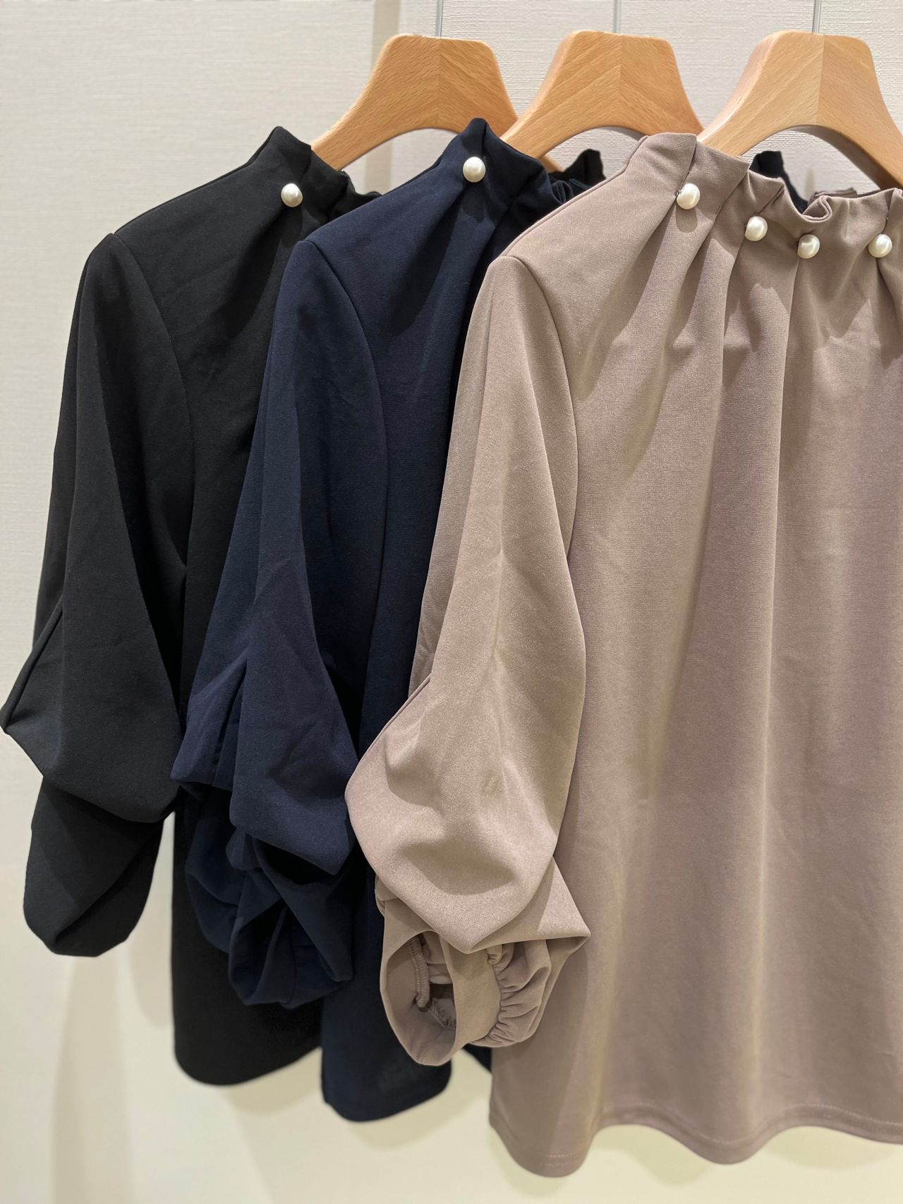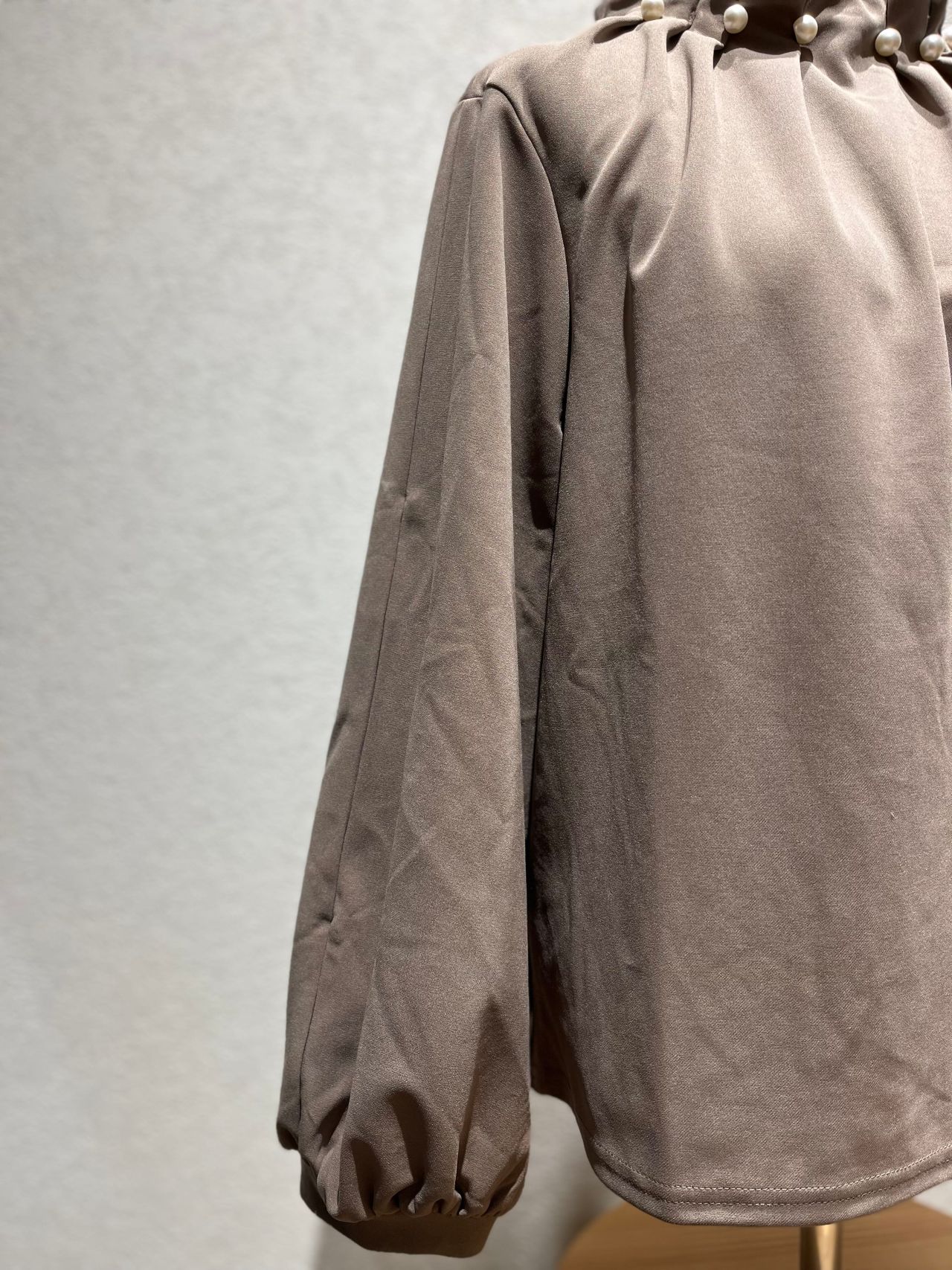 今回ご紹介させて頂くのは、衿元パールが今年らしいハイネックプルオーバーです!