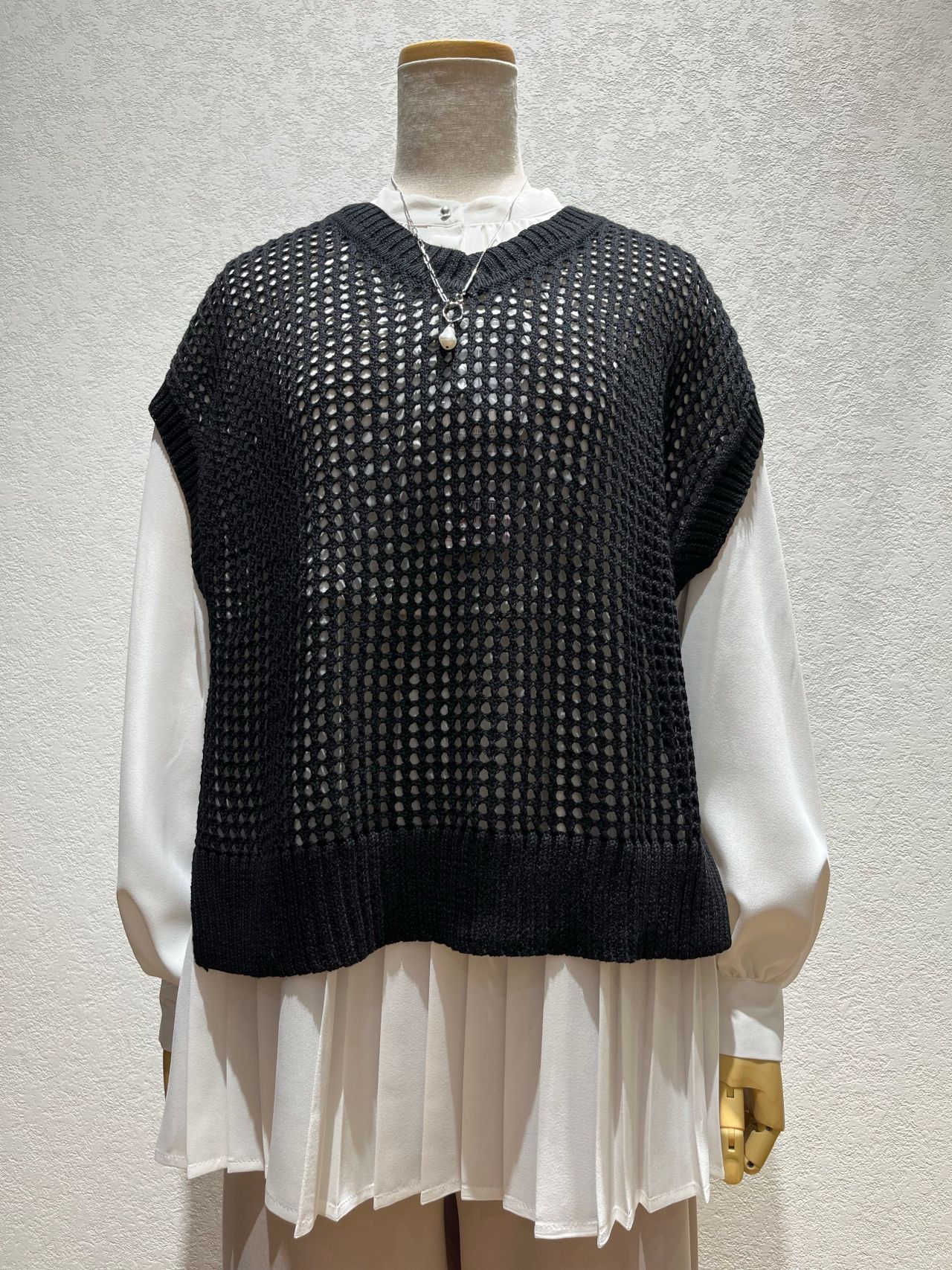 今回ご紹介させて頂くのは、メッシュ編みが特徴的なベストです。