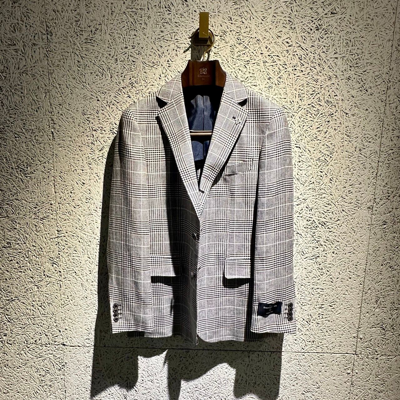 こちらのジャケットは、ウール・シルク・リネンの三者混で絶妙な麻感が出ていて柔らかな雰囲気と光沢が特徴です。