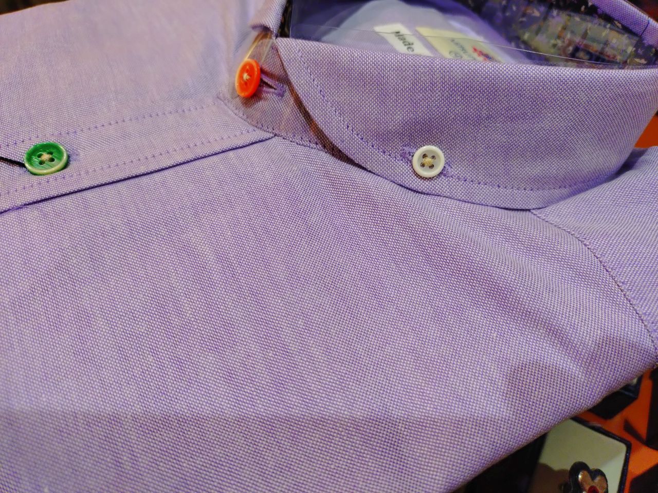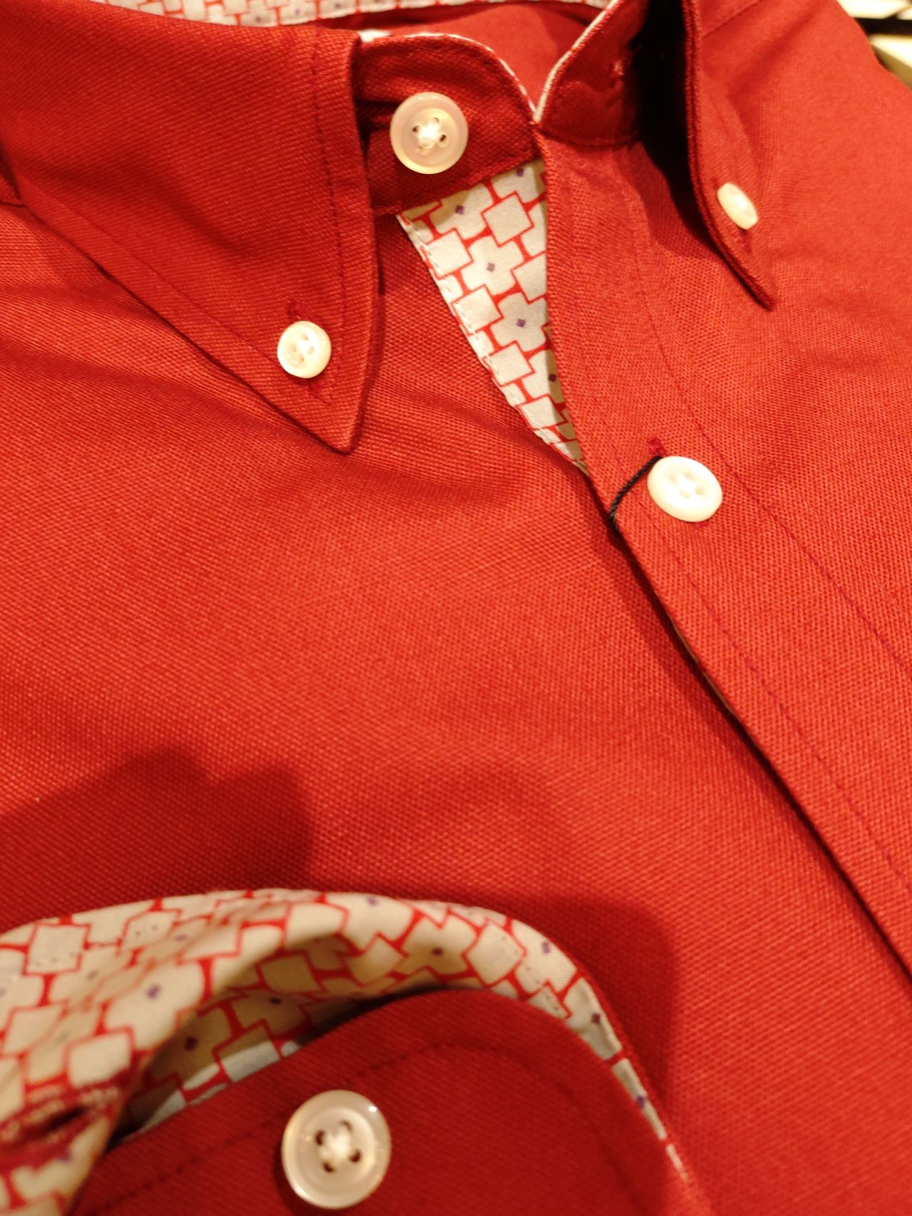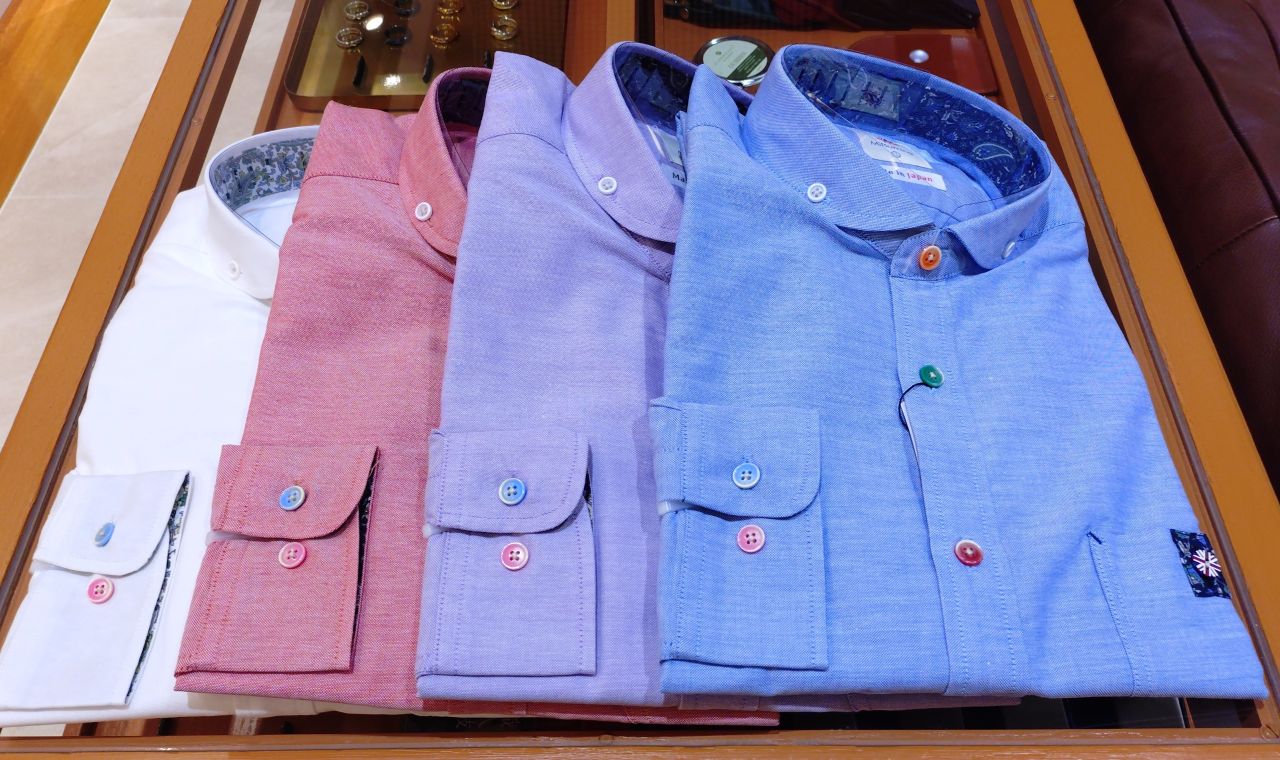 こちらの襟型はショールカラーボタンダウンで、ボタンはマルチボタン仕様になっております。