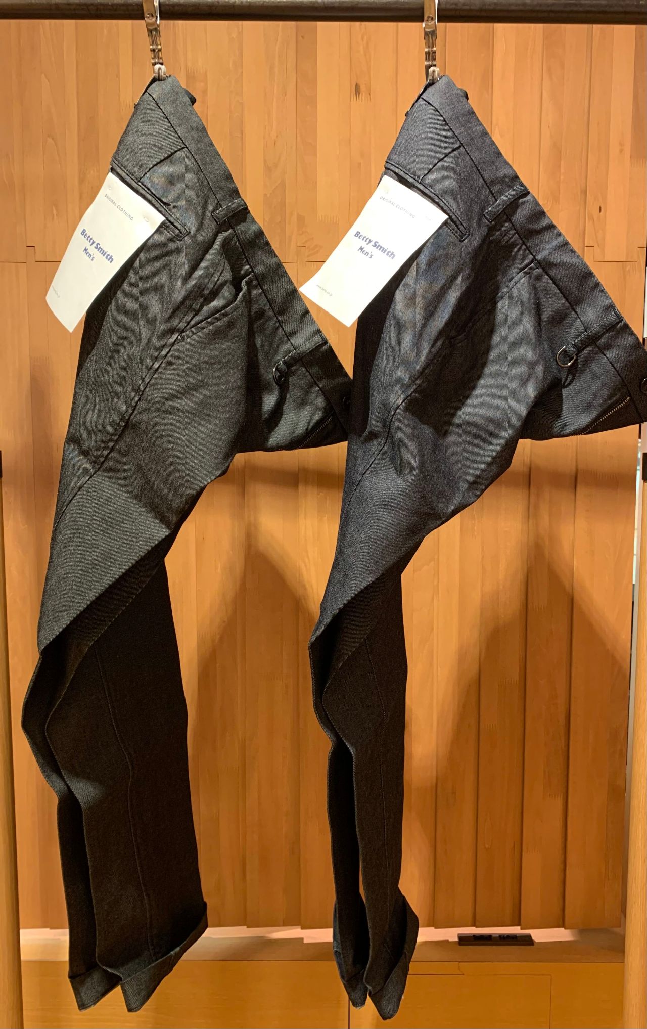 デニムで大丈夫かな?と思われる方もいらっしゃるかもしれないですが、形はスラックスでクリース入りになっておりますので、きちんとドレス感もございます。