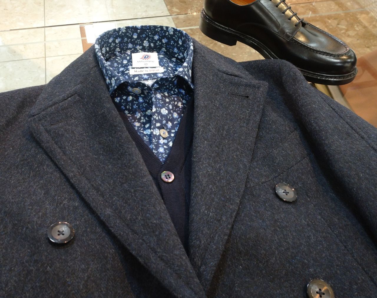 生地に合わせて選んだボタンや色糸がアクセントになっています。