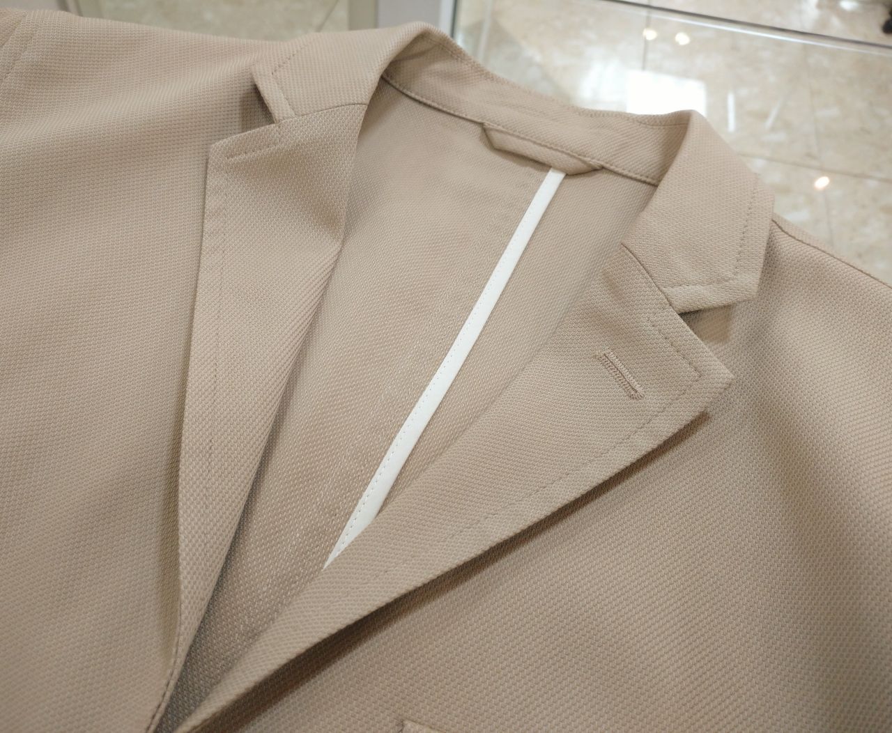 シャープな印象のノッチドラペルや、