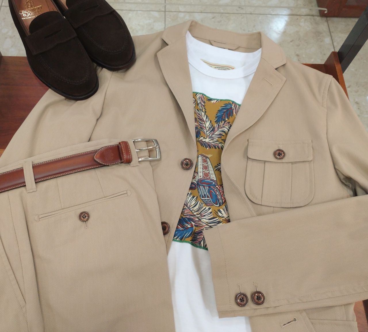 シャツジャケットとパンツはビジネスカジュアルとしても着用しやすく、