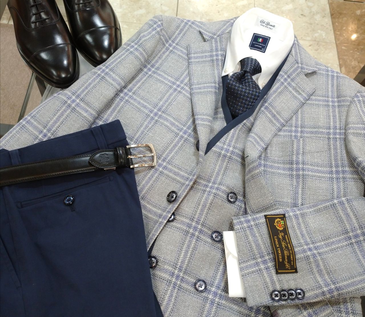 また、ジャケットと共地のベストを加えるとワンランク上の着こなしが楽しめます。