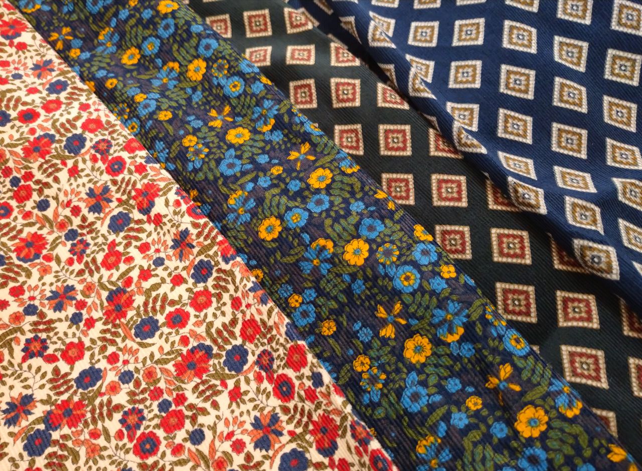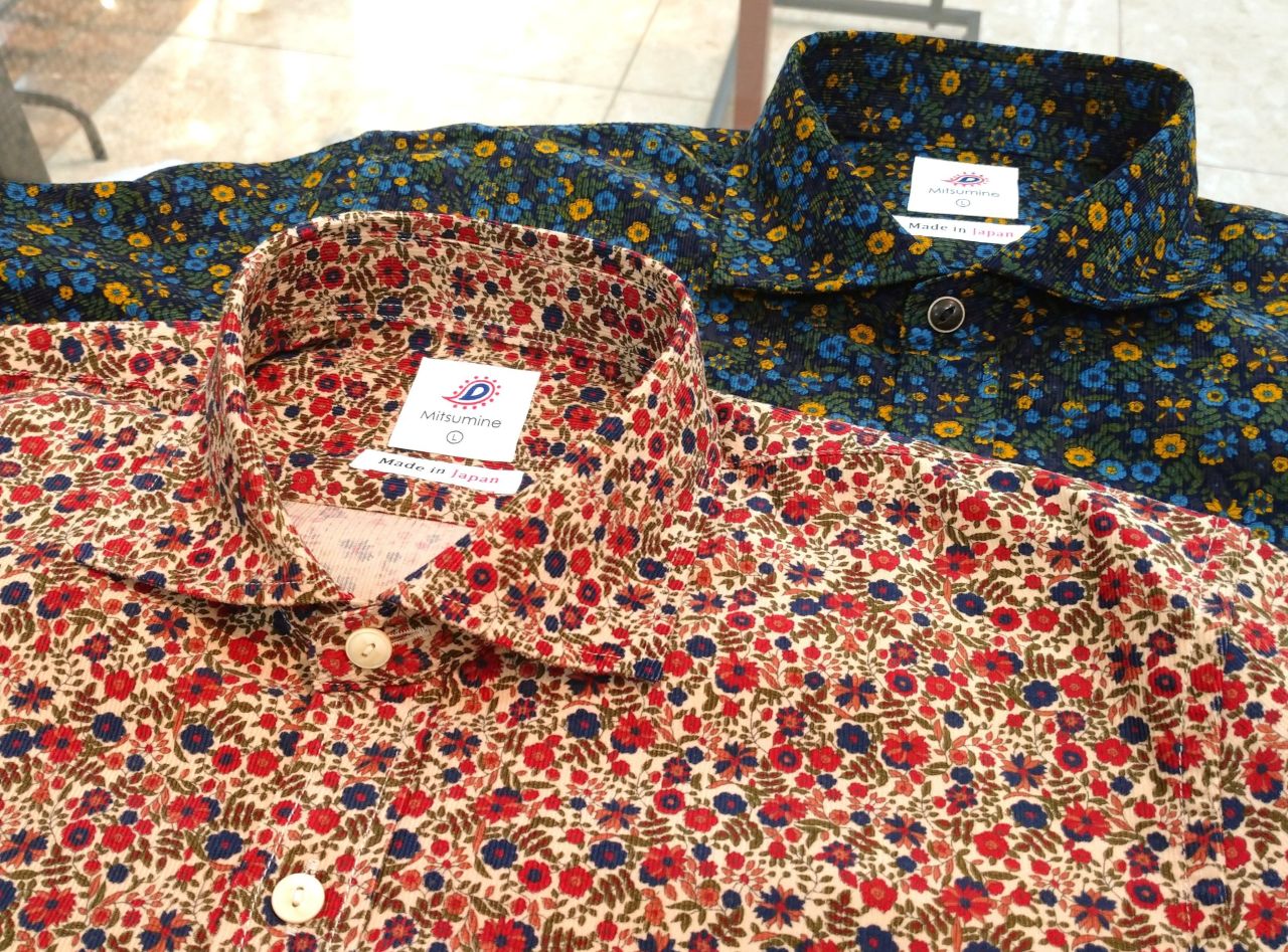 コーデュロイプリントワイドカラーシャツ