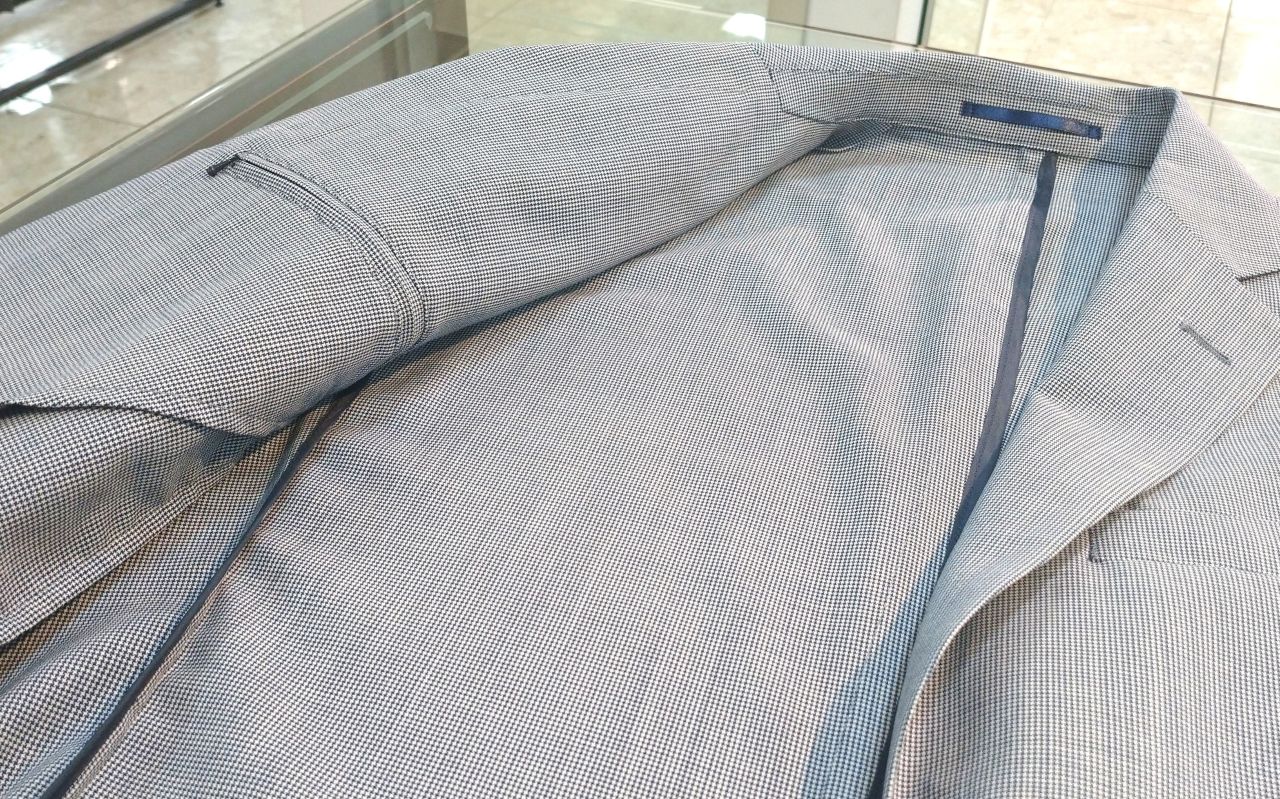 背中や袖の裏地も完全に省いたアンコン仕立てになり、