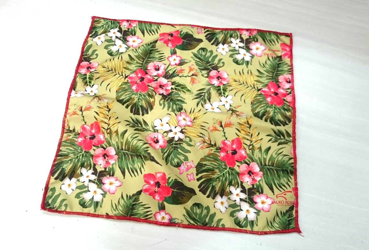 カラフルなハイビスカス柄のポケットチーフも付いています♪