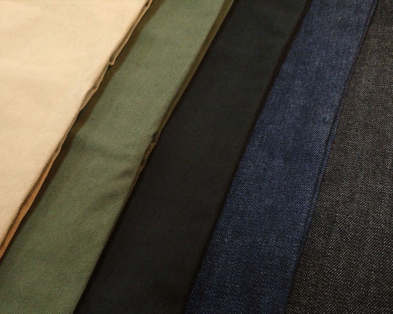 コットンにポリウレタンなどが混紡された程良い厚みの生地で、