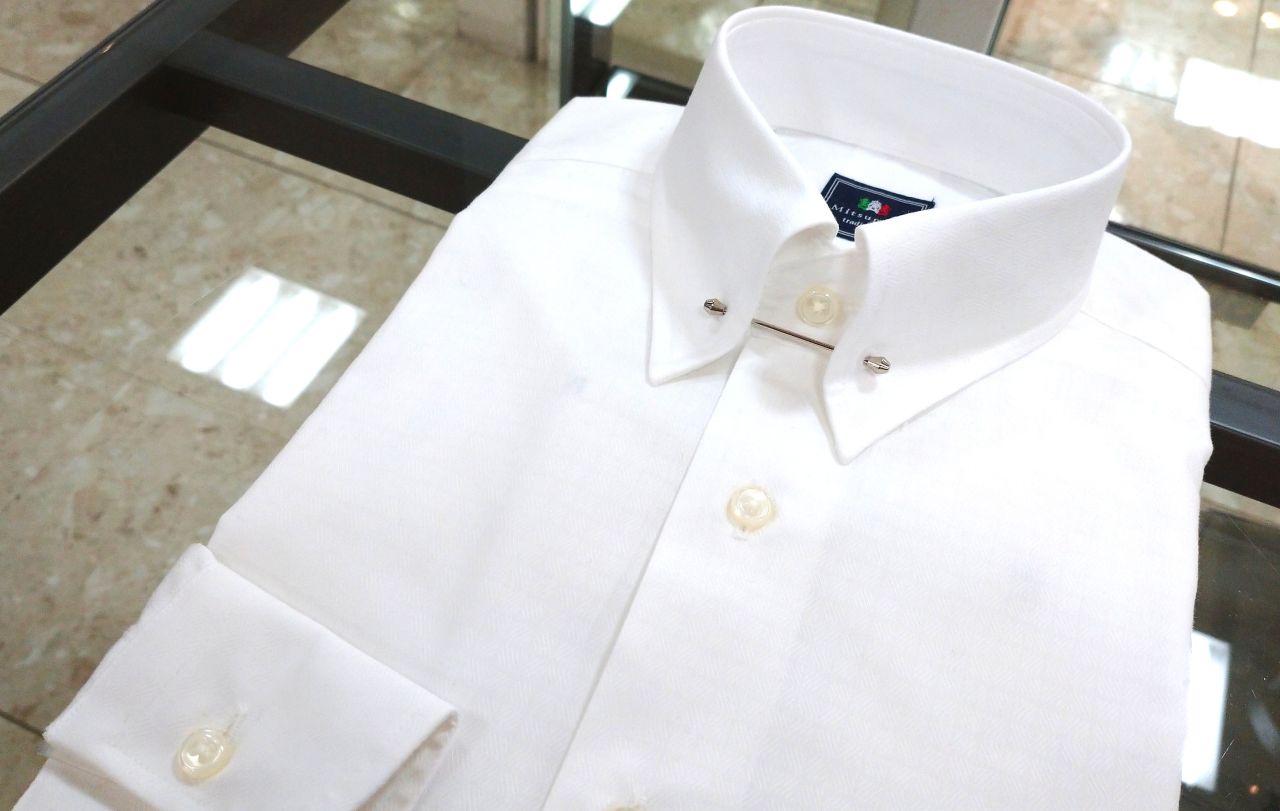 ピンホールカラーは、襟にハトメと呼ばれる穴があり、そこにピンを通して使用するシャツのことです。
