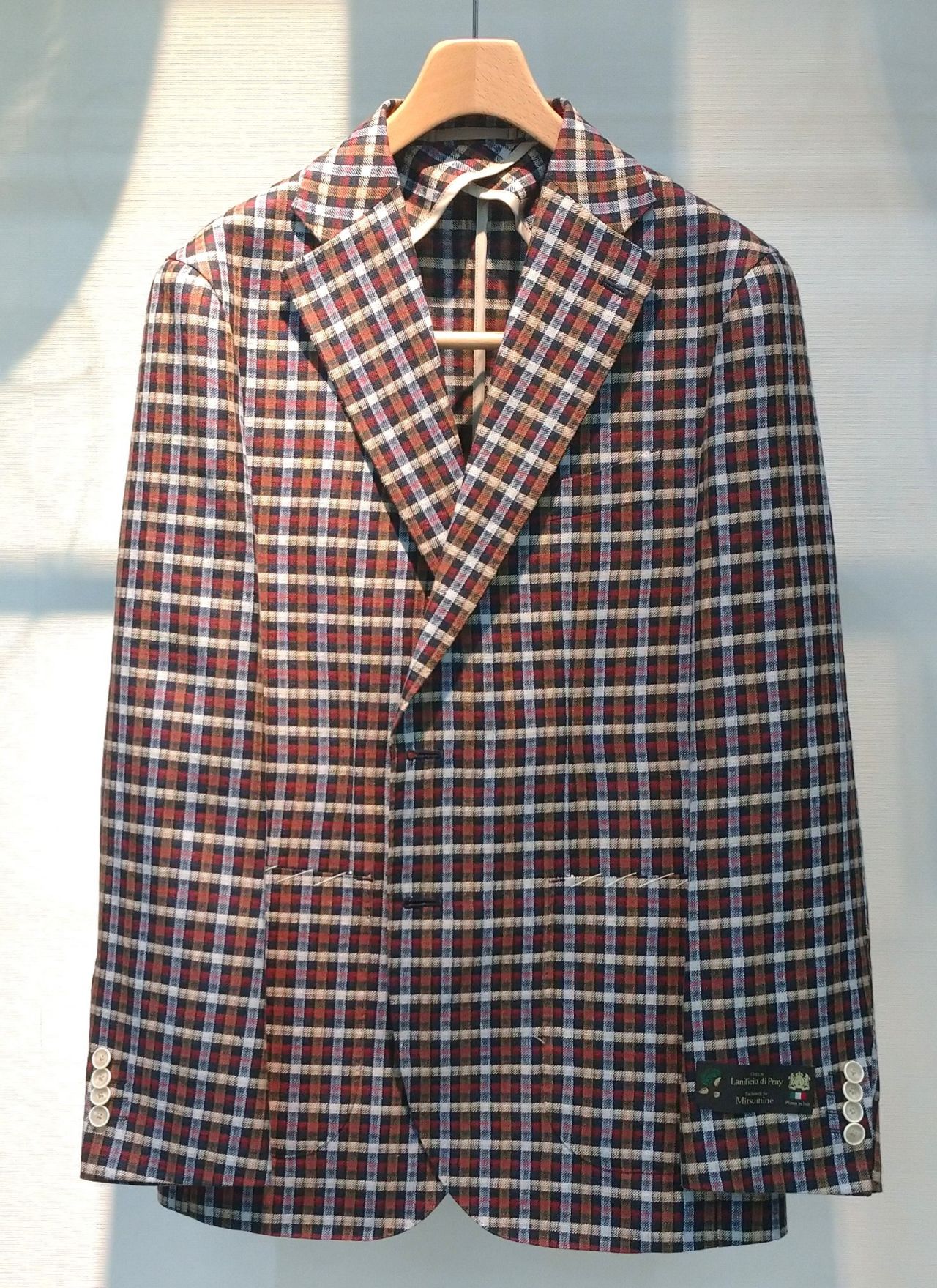 ネイビーとホワイトのチェックが爽やかなFlyジャケットです。