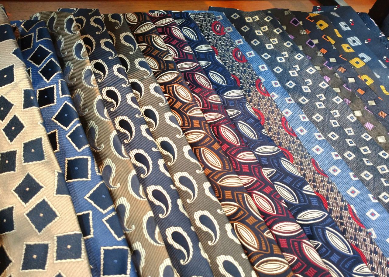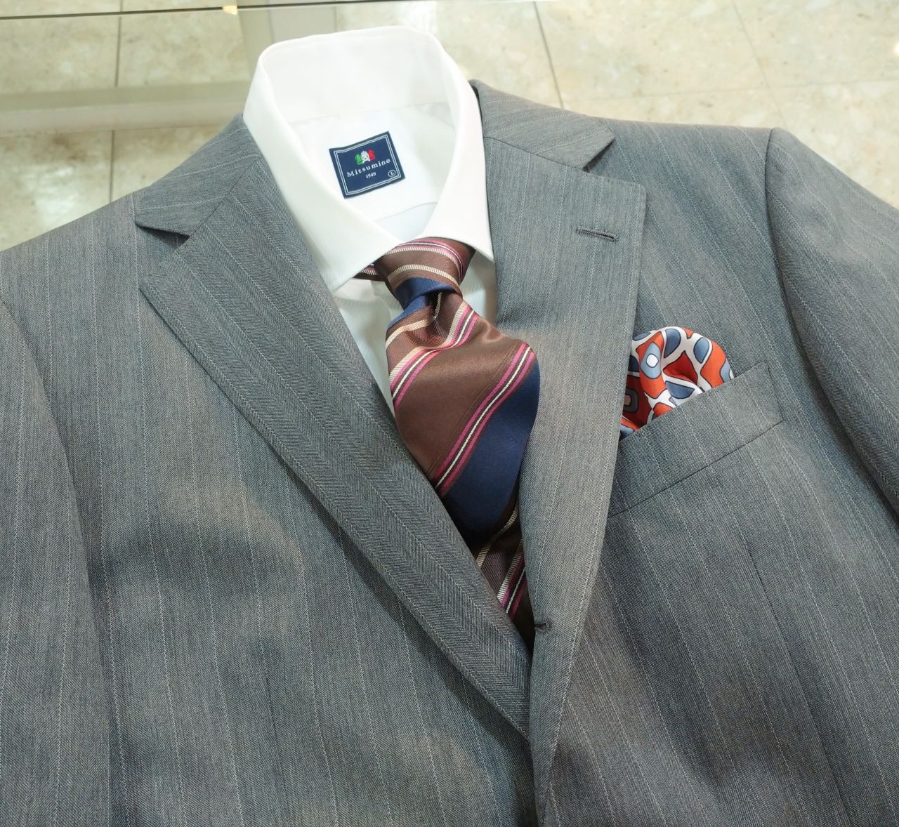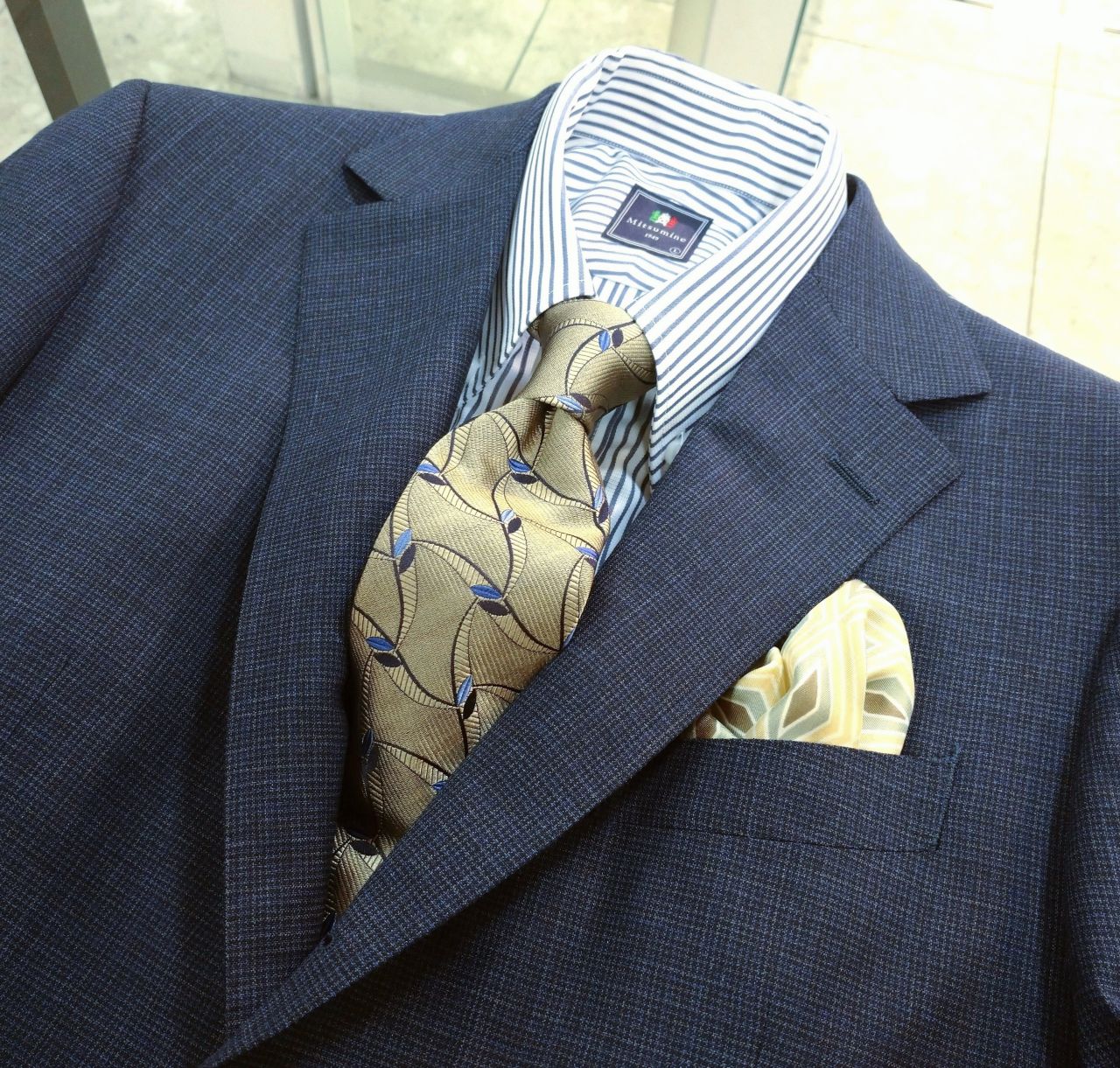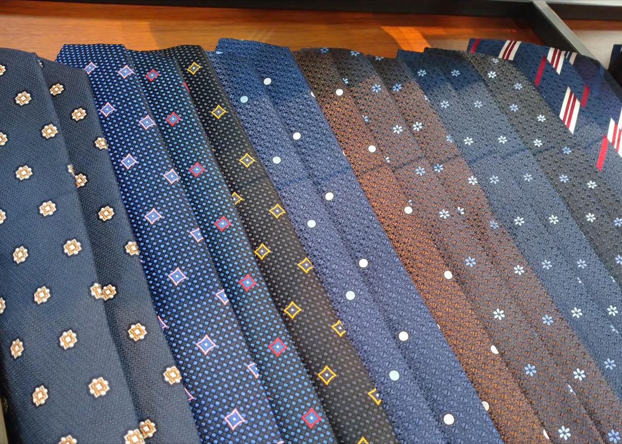 レトロなリーフ柄のネクタイは、ネイビーのスーツと相性◎