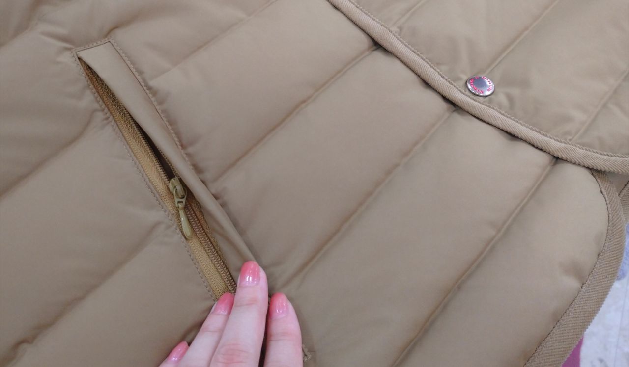 ポケットはファスナーになっており、入れた物が落ちにくい仕様になっているところが◎!