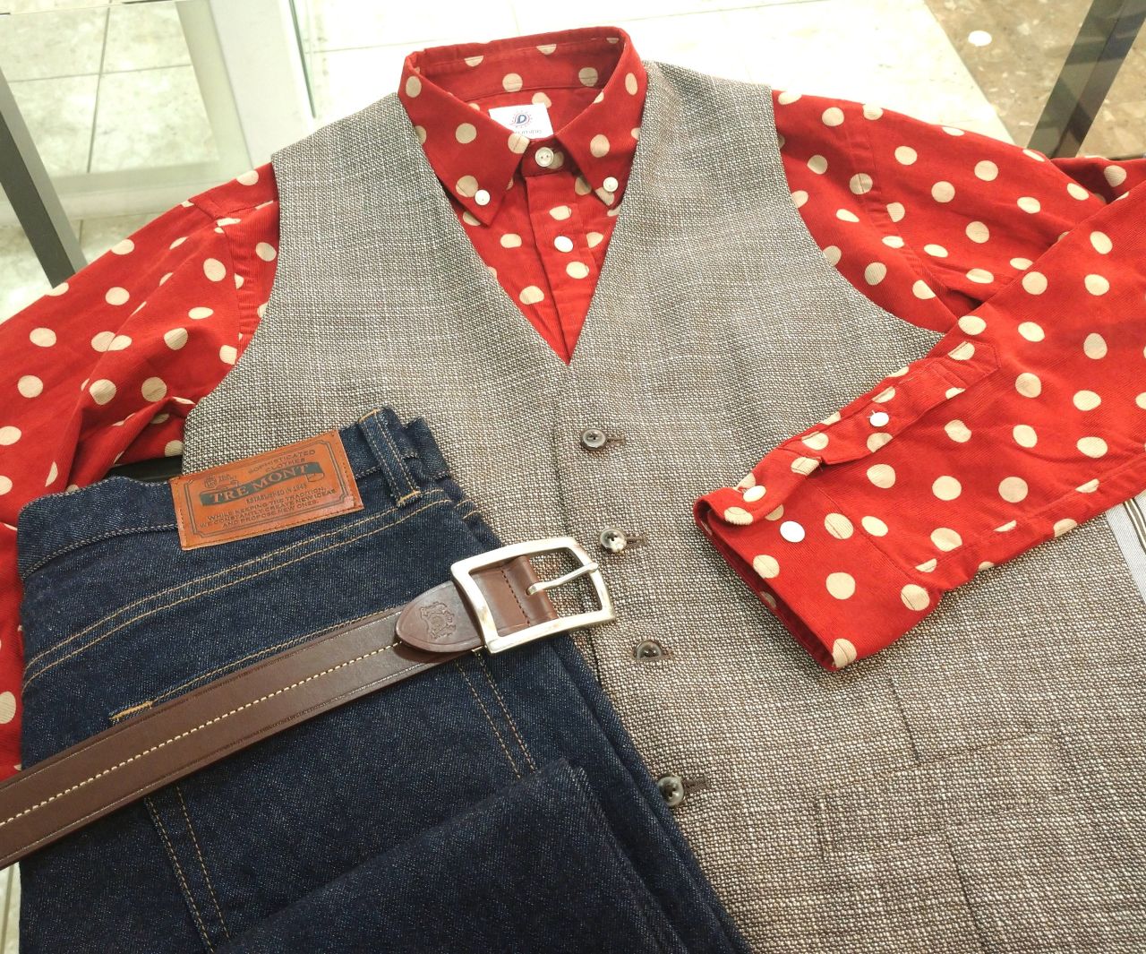 このようなベストを合わせた着こなしもおすすめです。