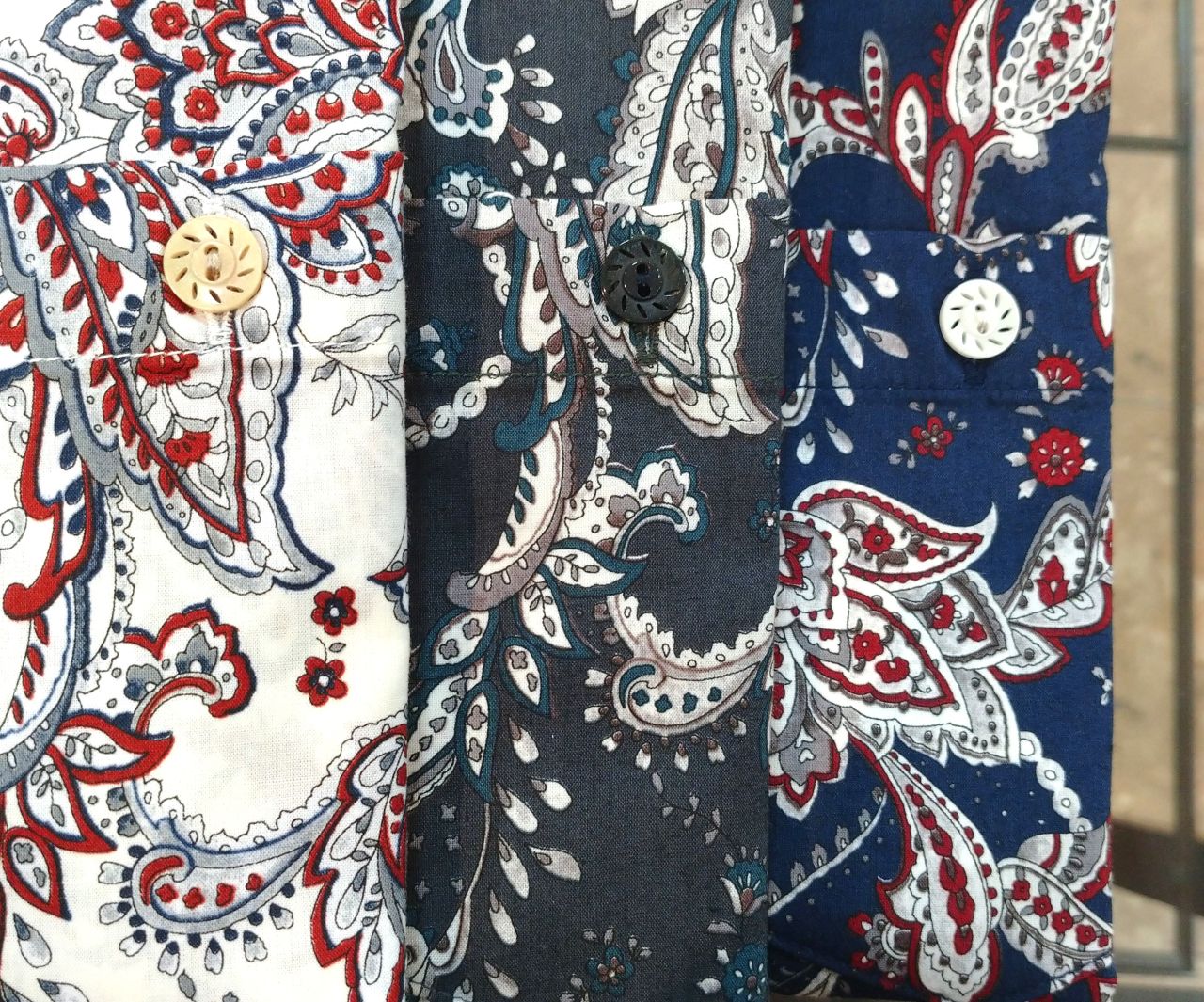 シャツそれぞれのボタンの色にもこだわっています♪