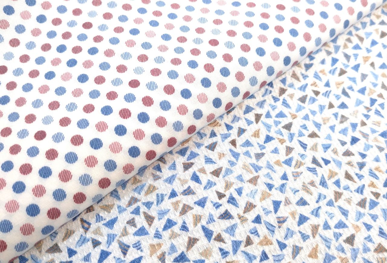 ドット柄(左)はコットンにポリウレタンを混紡した柔らかな素材、